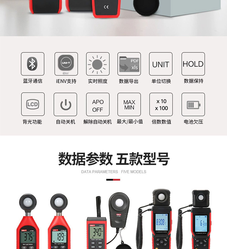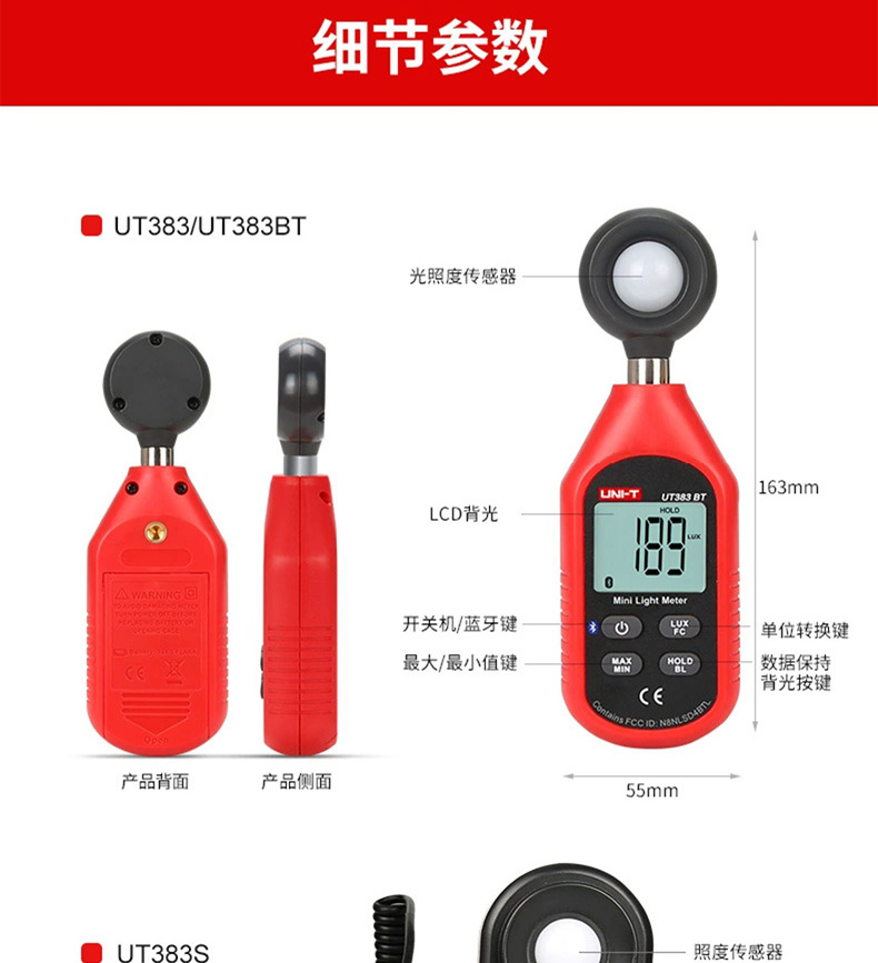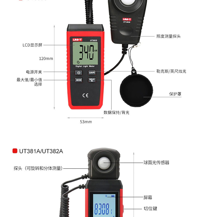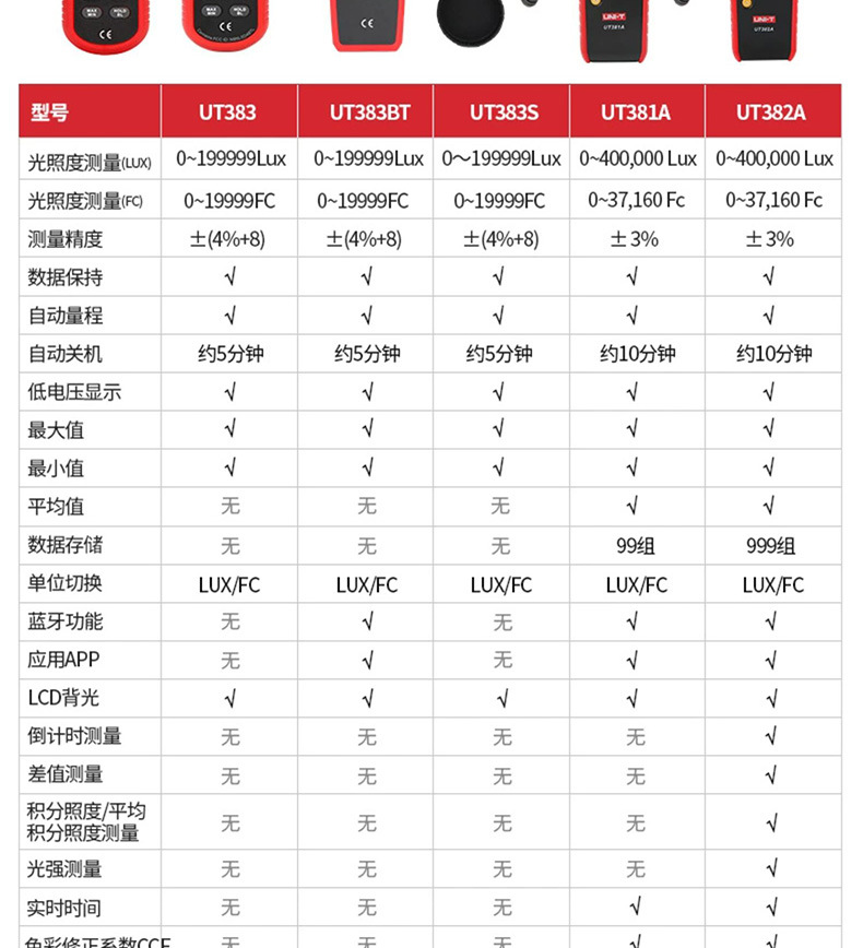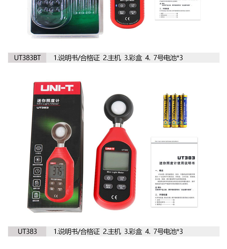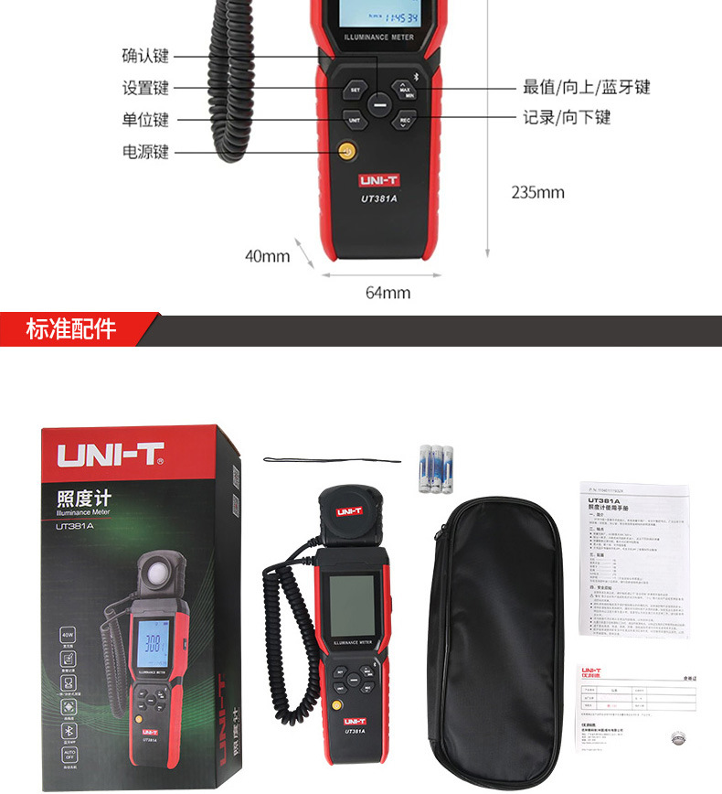 ユリッドut381/382/383bt/383sデジタル照度計高精度輝度計マイクロ光検出器