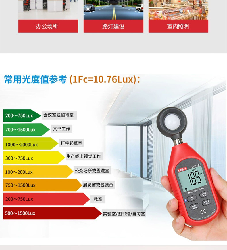 ユリッドut383/ut383bt/ut383 sデジタル照度計高精度光度測定器輝度計