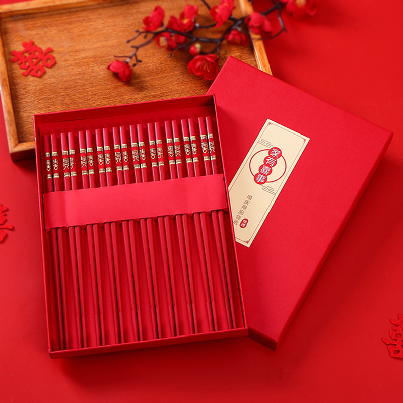 碗のギフトボックスの陶磁器の赤い碗の箸のセットの結婚のお返し用品の嫁入り用品の対碗の陶磁器の喜碗のお返しの結び