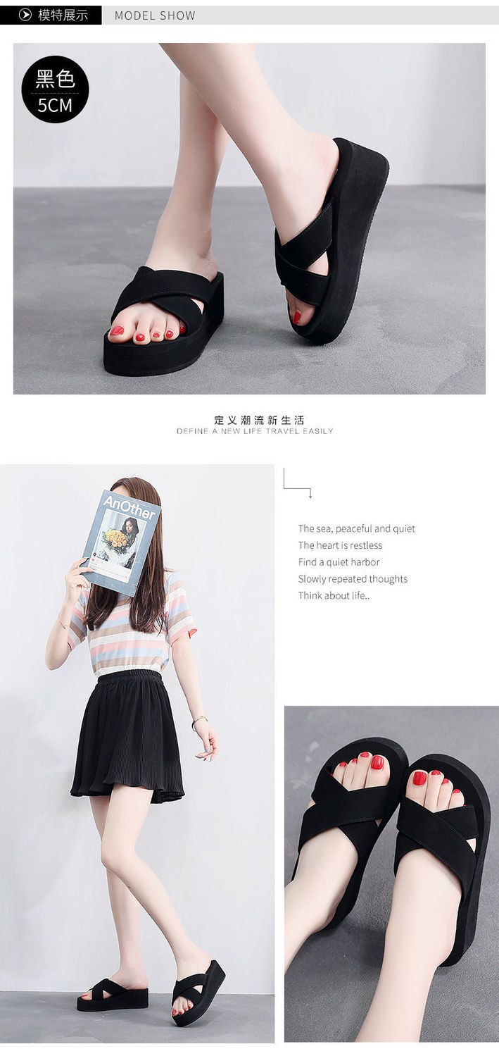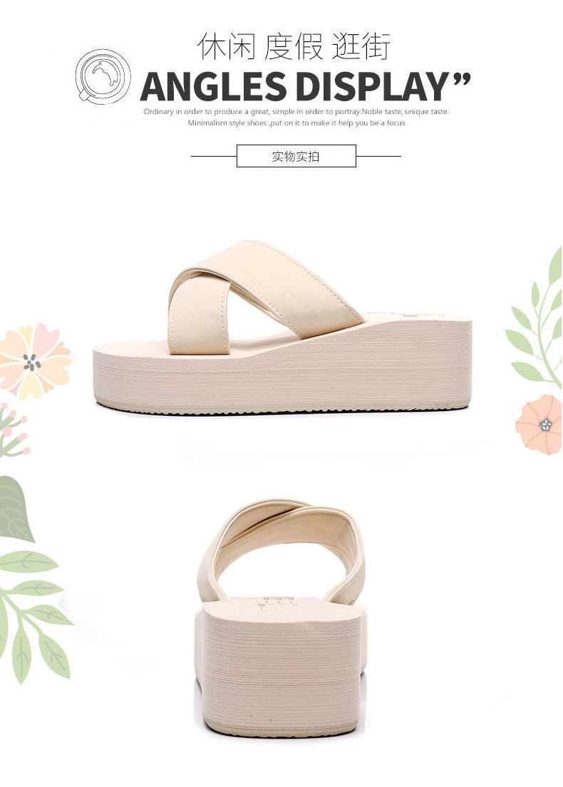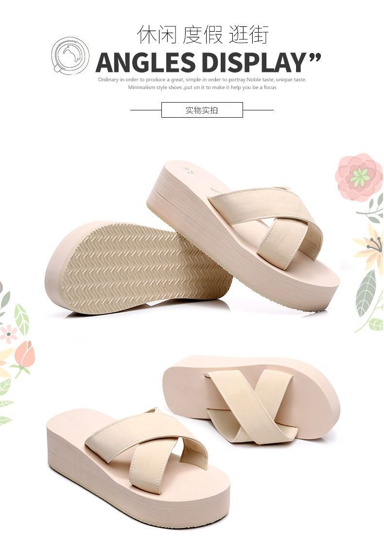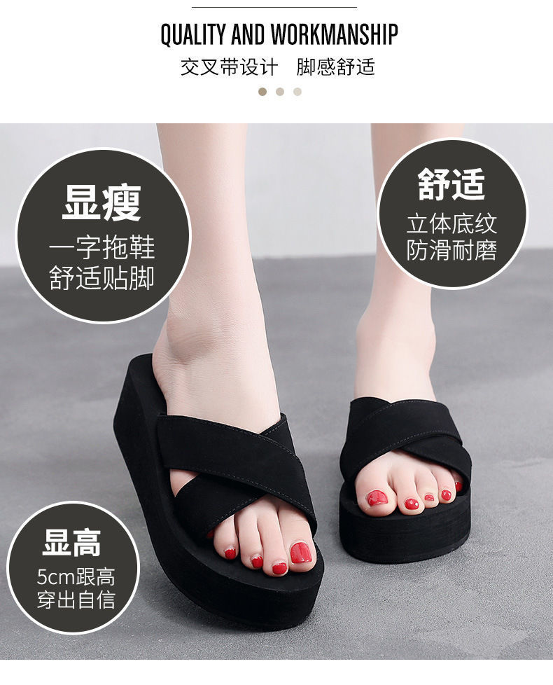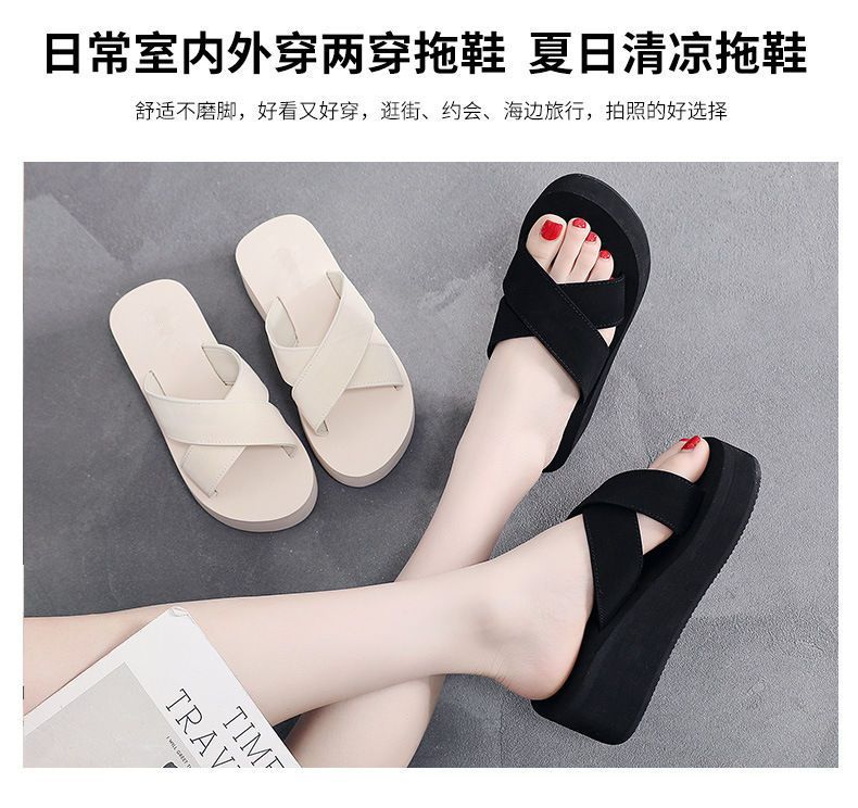 クロススリッパの女性夏ネットレッドinsはカジュアルで痩せているサンダルの坂と厚い底の海辺の滑り止めビーチ靴を着ている