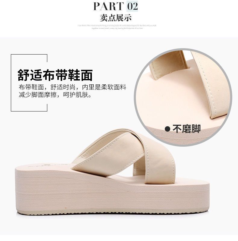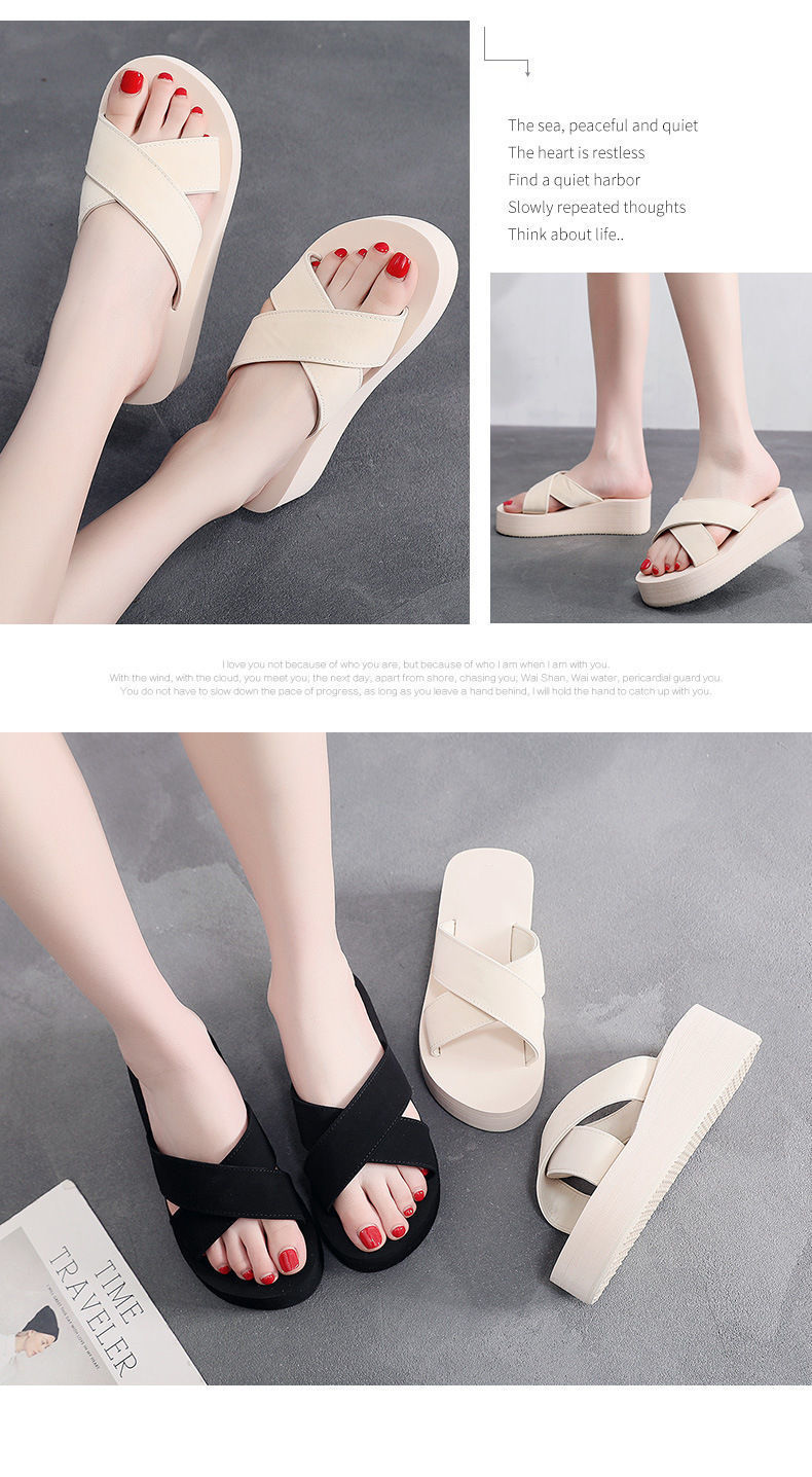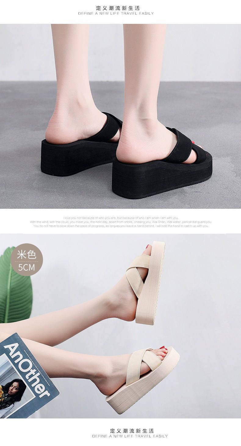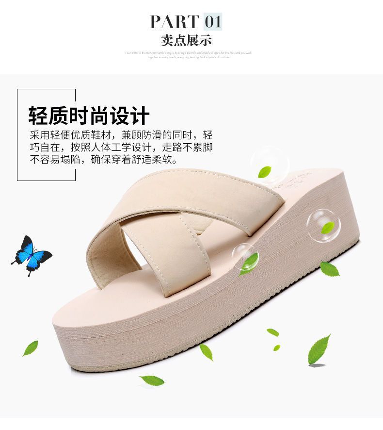 クロススリッパの女性夏ネットレッドinsはカジュアルで痩せているサンダルの坂と厚い底の海辺の滑り止めビーチ靴を着ている