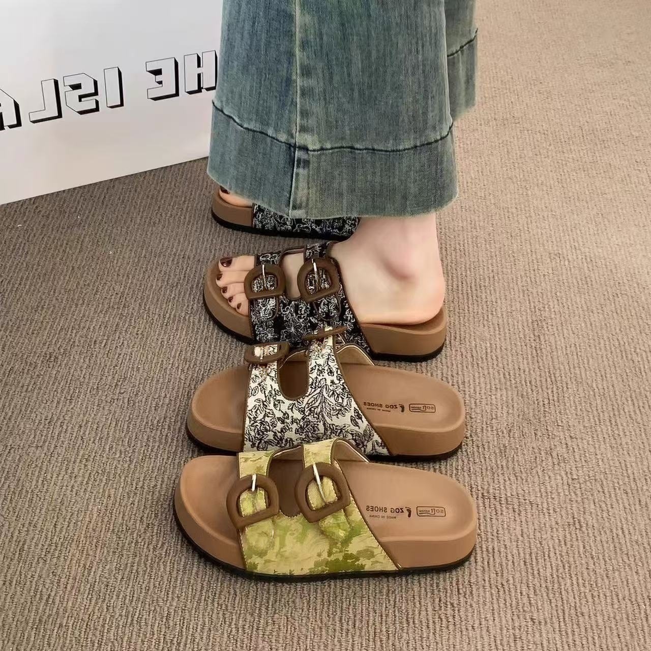 厚底勃肯一字拖鞋2025新款女夏季韩版外穿拖鞋度假配裙子沙滩凉鞋