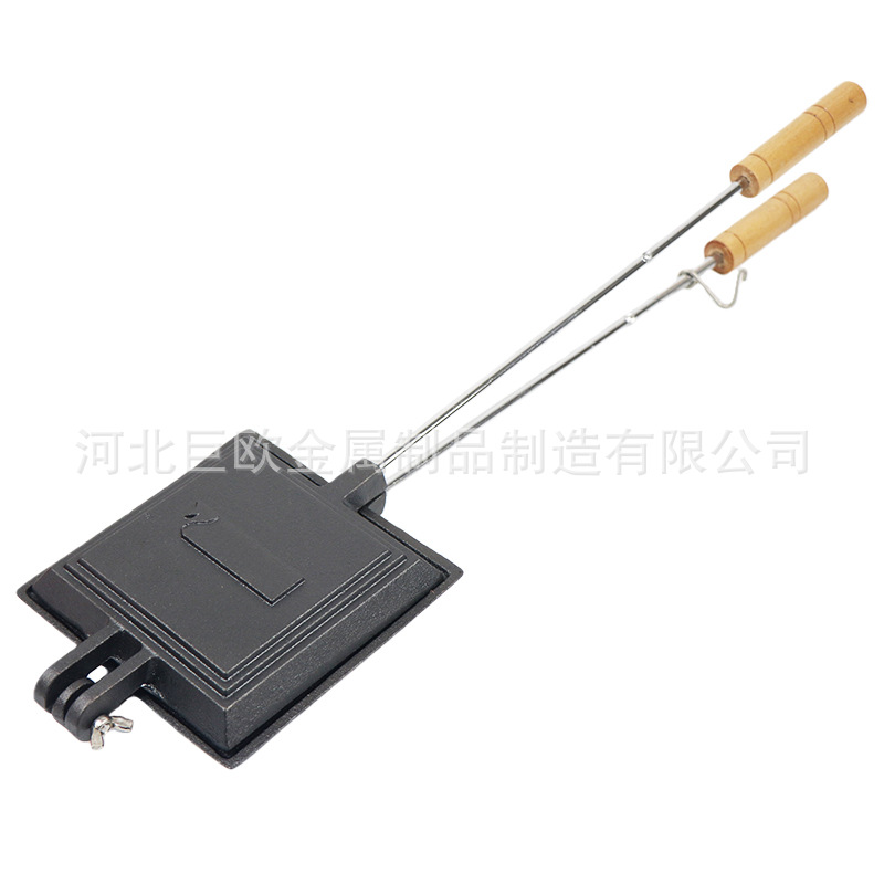 サンドイッチ焼き皿屋外焼きクリップ鋳鉄正方形パンクリップ木柄焼きクリップキャンプ焼きパンクリップcamp