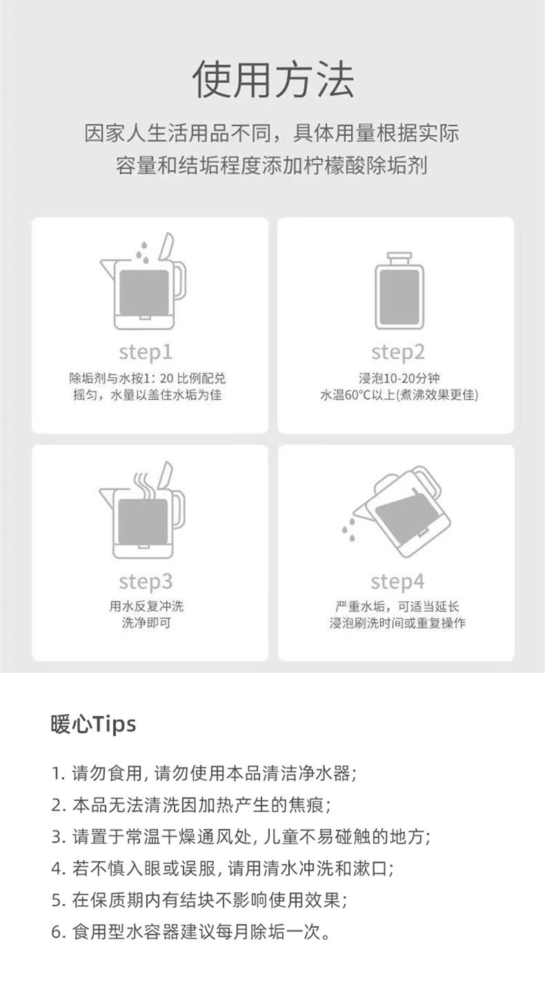 乾燥衛士クエン酸洗浄剤電気ポット水垢除去剤乳幼児食品級洗浄神器卸売り