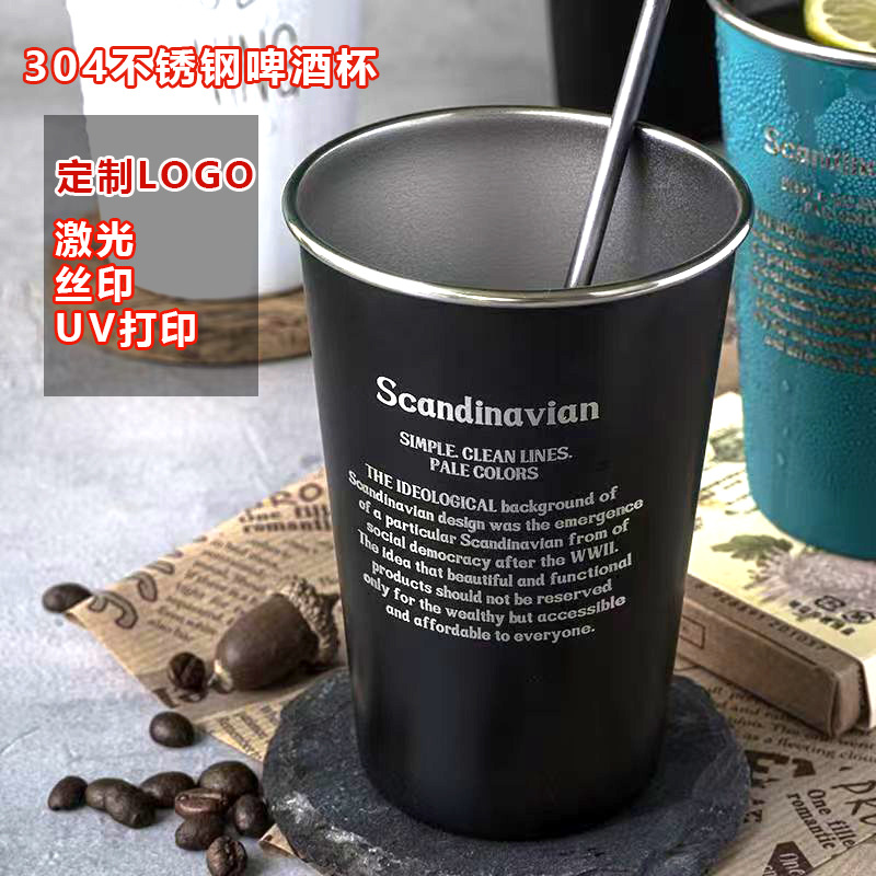 国境を越えたアマゾンステンレスビールグラス304単層夏の冷たいカップ口カップ印刷ロゴカップコップコップコップ
