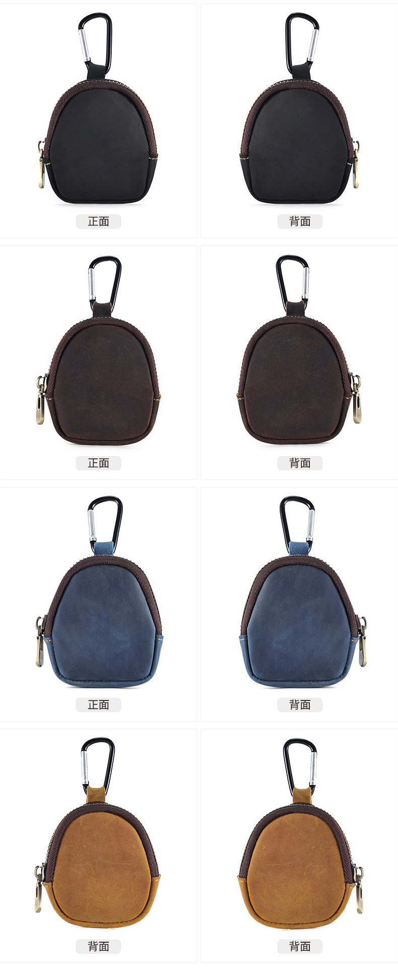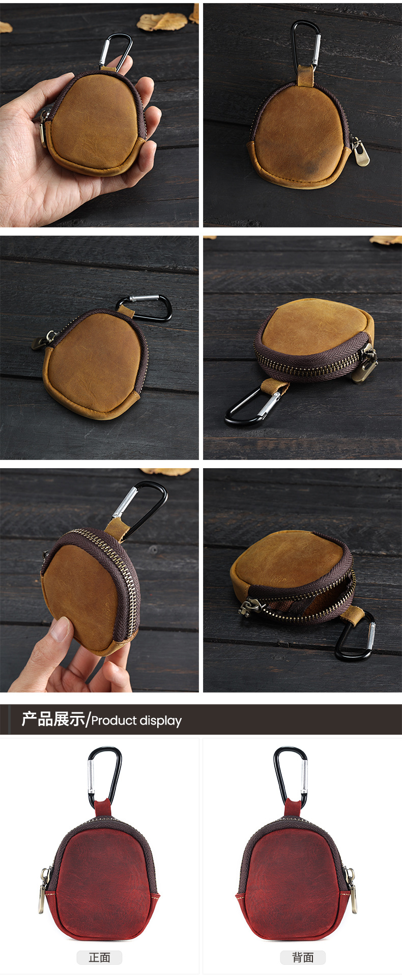 クロスボーダー外国貿易新型レトロ狂馬皮bluetoothイヤホン収納バッグファスナー硬貨小銭入れ本革キーホルダー