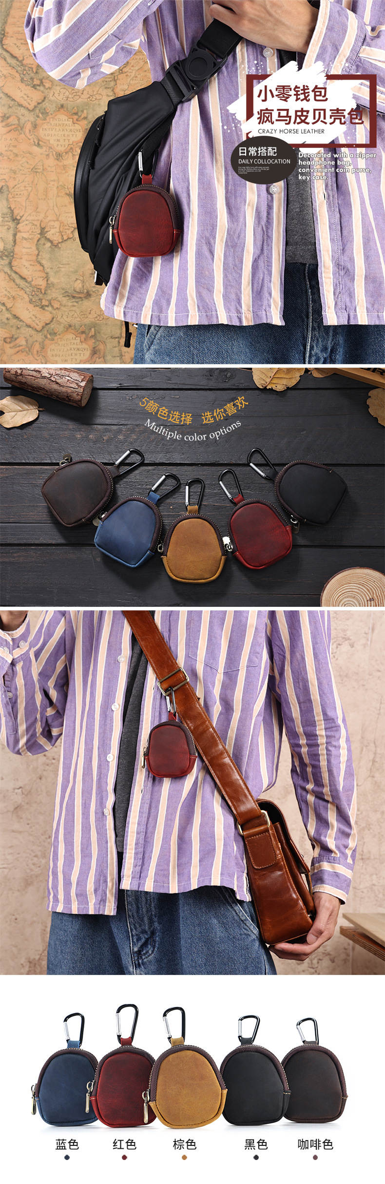 クロスボーダー新作ミニ小銭入れクレイジーホースレザー本革かわいい小さな財布多機能財布収納バッグハンギングバッグ