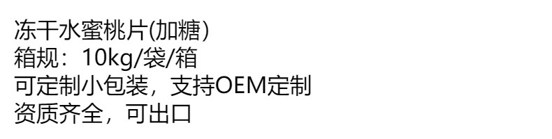 パッケージ仕様 冷凍乾燥水蜜桃片 (砂糖入り) 1kg