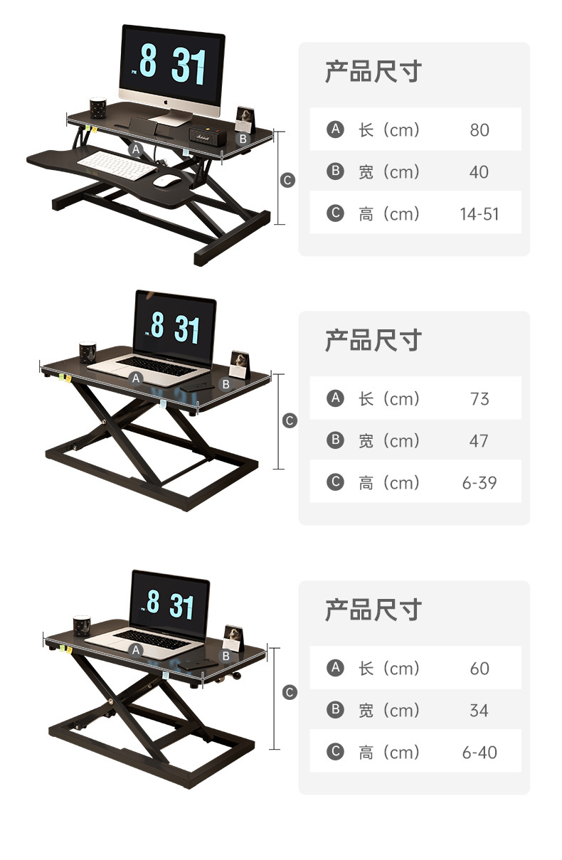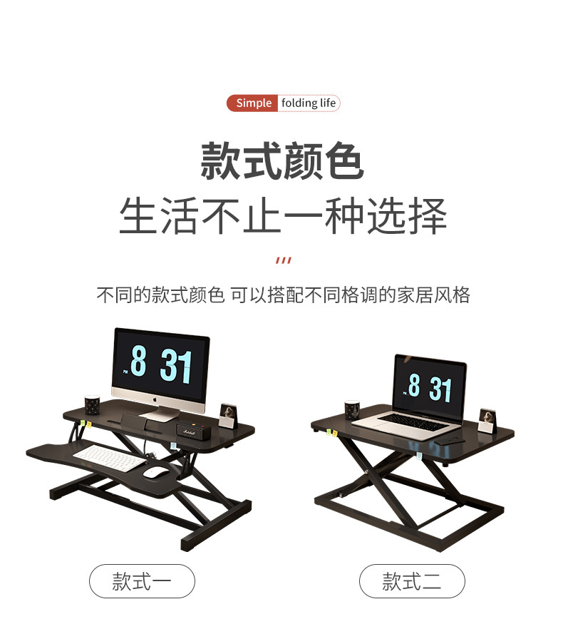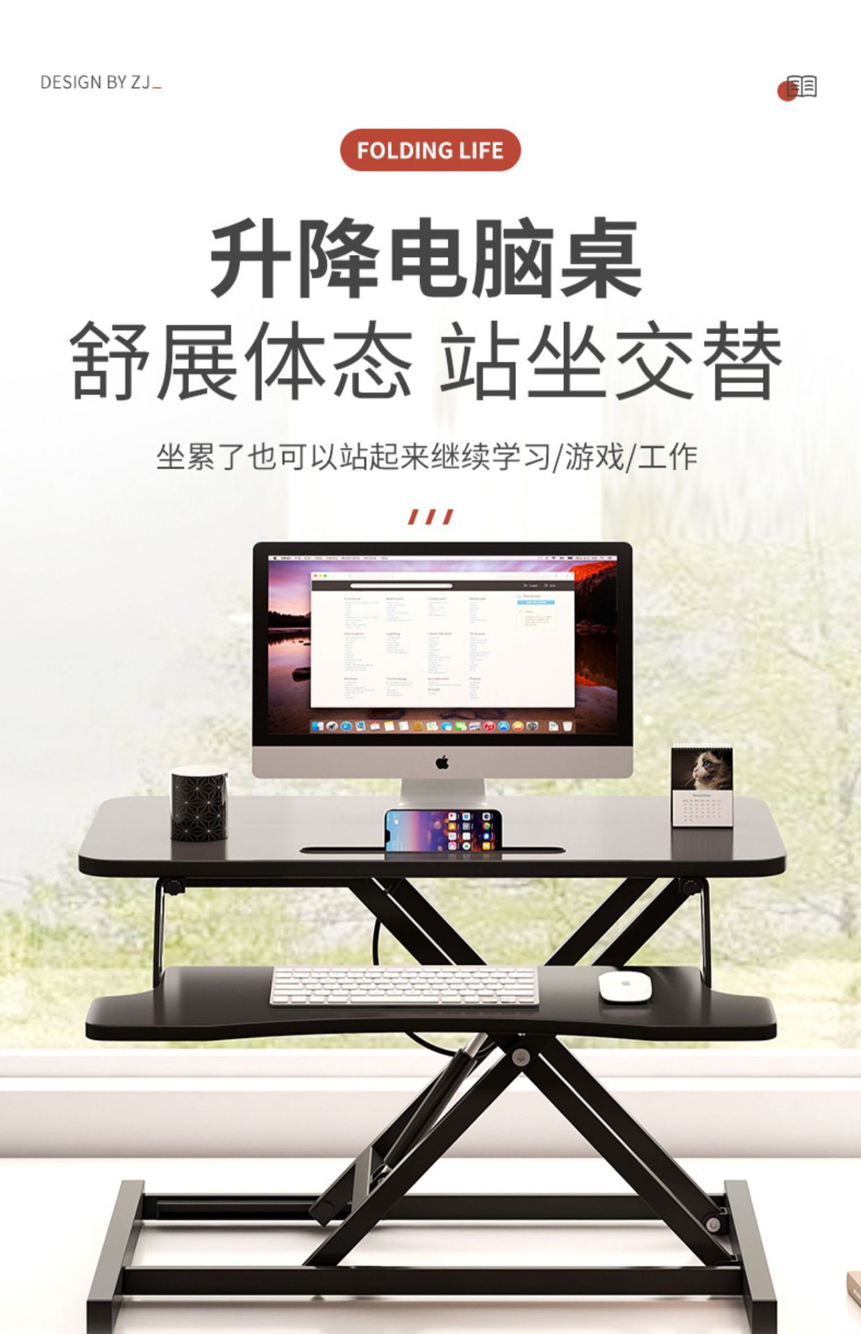 スタンド式デスクは折りたたみ式で昇降可能です。