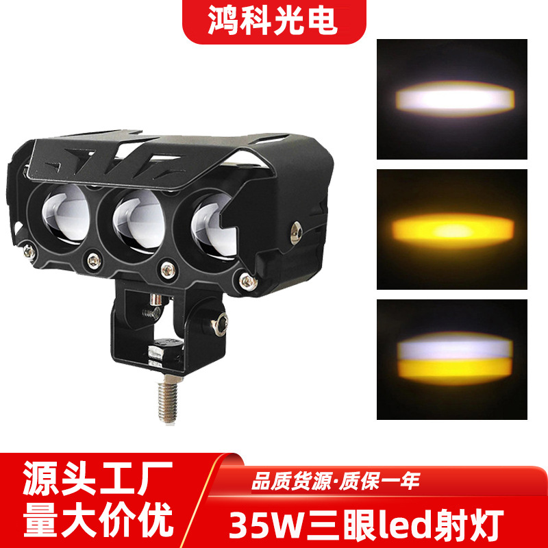 オートバイスポットライト2色ledヘッドライト3眼スポットライト遠近光防水電動オートバイ前照灯改造