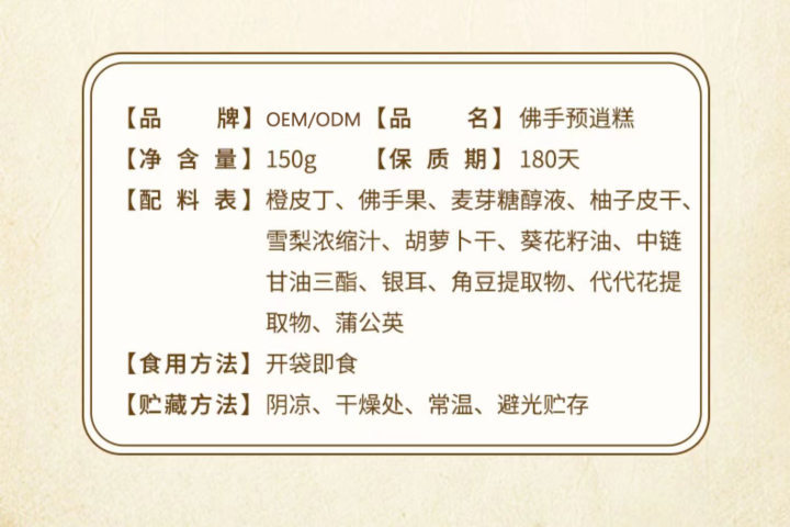 パッケージ仕様 仏手事前消餅/箱,代理店はカスタマーサービスにお問い合わせください。,ブランドのカスタマイズはお客様にお問い合わせください,量が多くて、お問い合わせします。サプライズがあります。