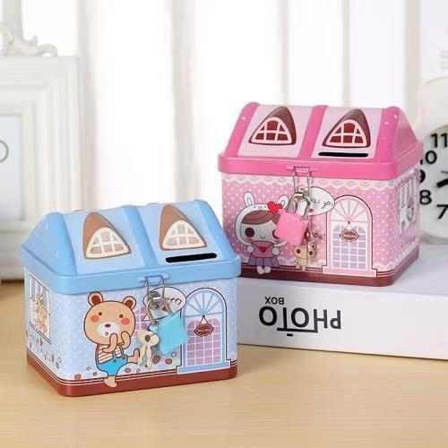 かわいい小さな家の形のブリキ貯金箱学生児童ロック付き収納ケース小銭入れ賞品プレゼント