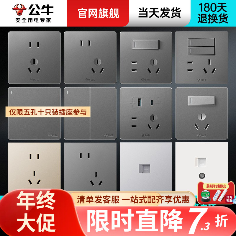 G12大型白牛スイッチソケットパネル卸売86型埋め込み壁掛けエアコン16A 4穴USBコンセント
