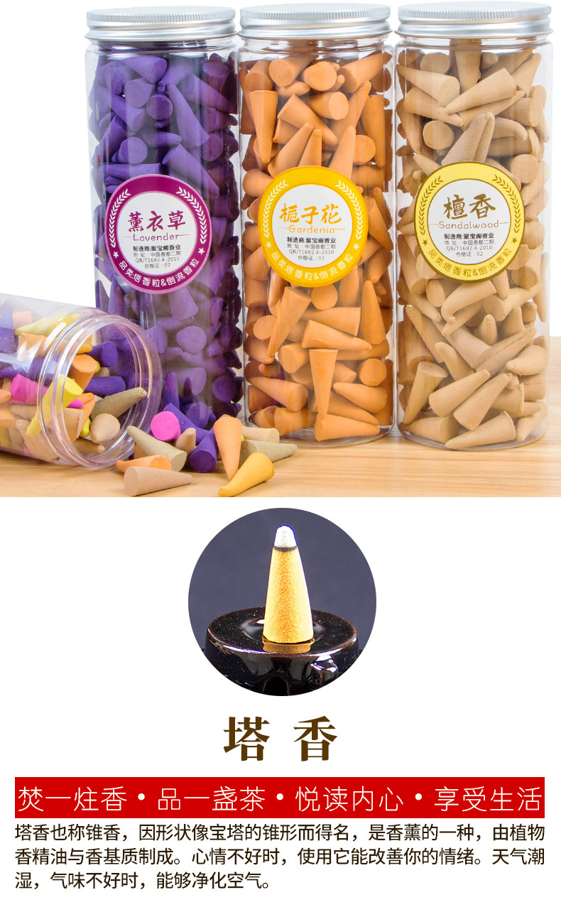 塔香逆流香檀香薫香家庭用宝塔錐香粒ラベンダー塔香炉香薫トイレ消臭除去
