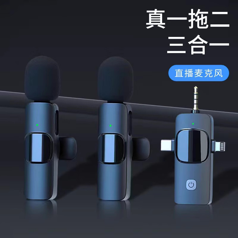 ワイヤレスラベリアマイクK15、越境マイクの人気商品、3in1携帯電話ライブ配信、屋外カメラ撮影動画