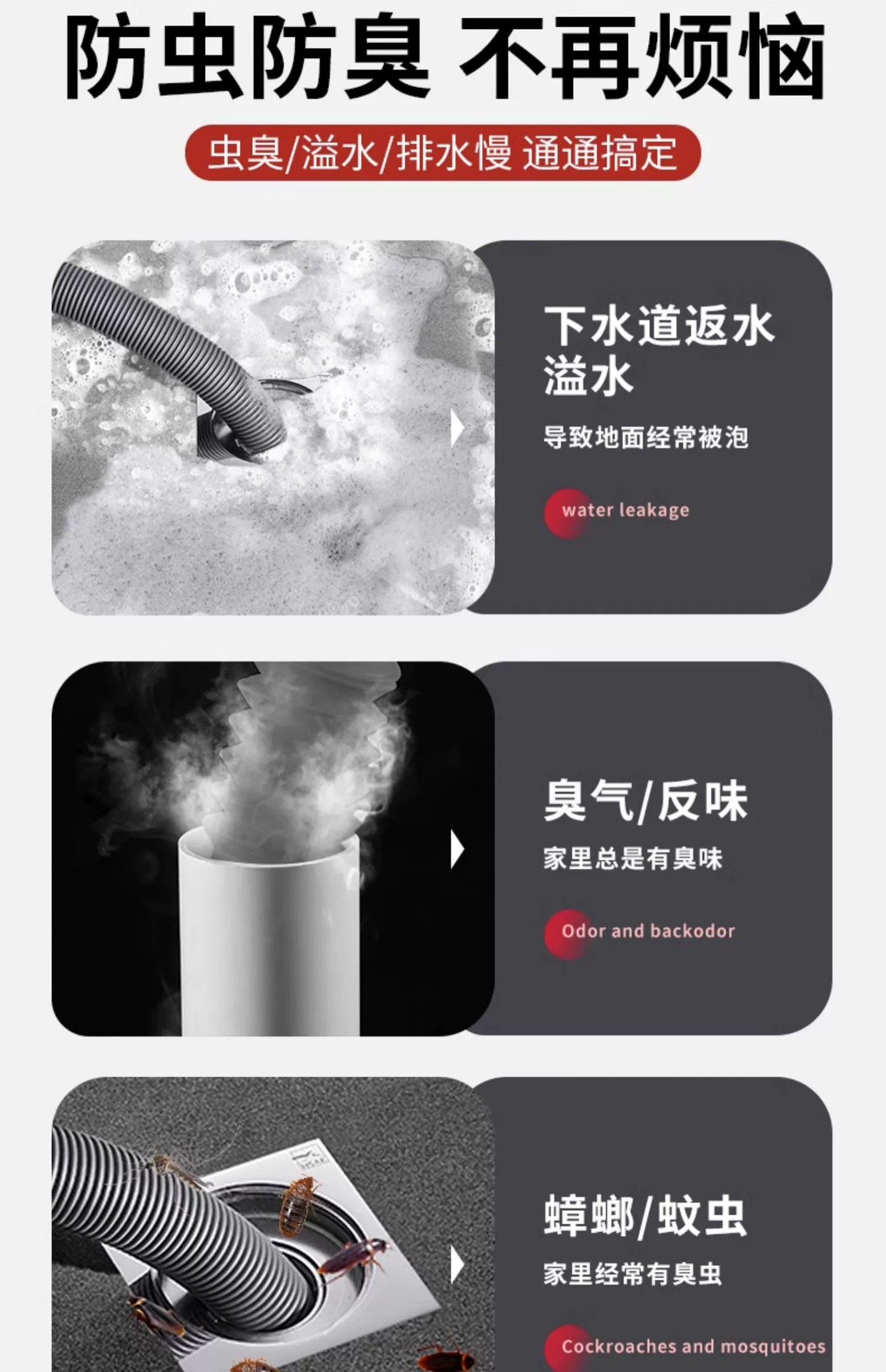 下水管防返臭神器不锈钢管道防臭密封塞厨房反味下水道封口盖通用