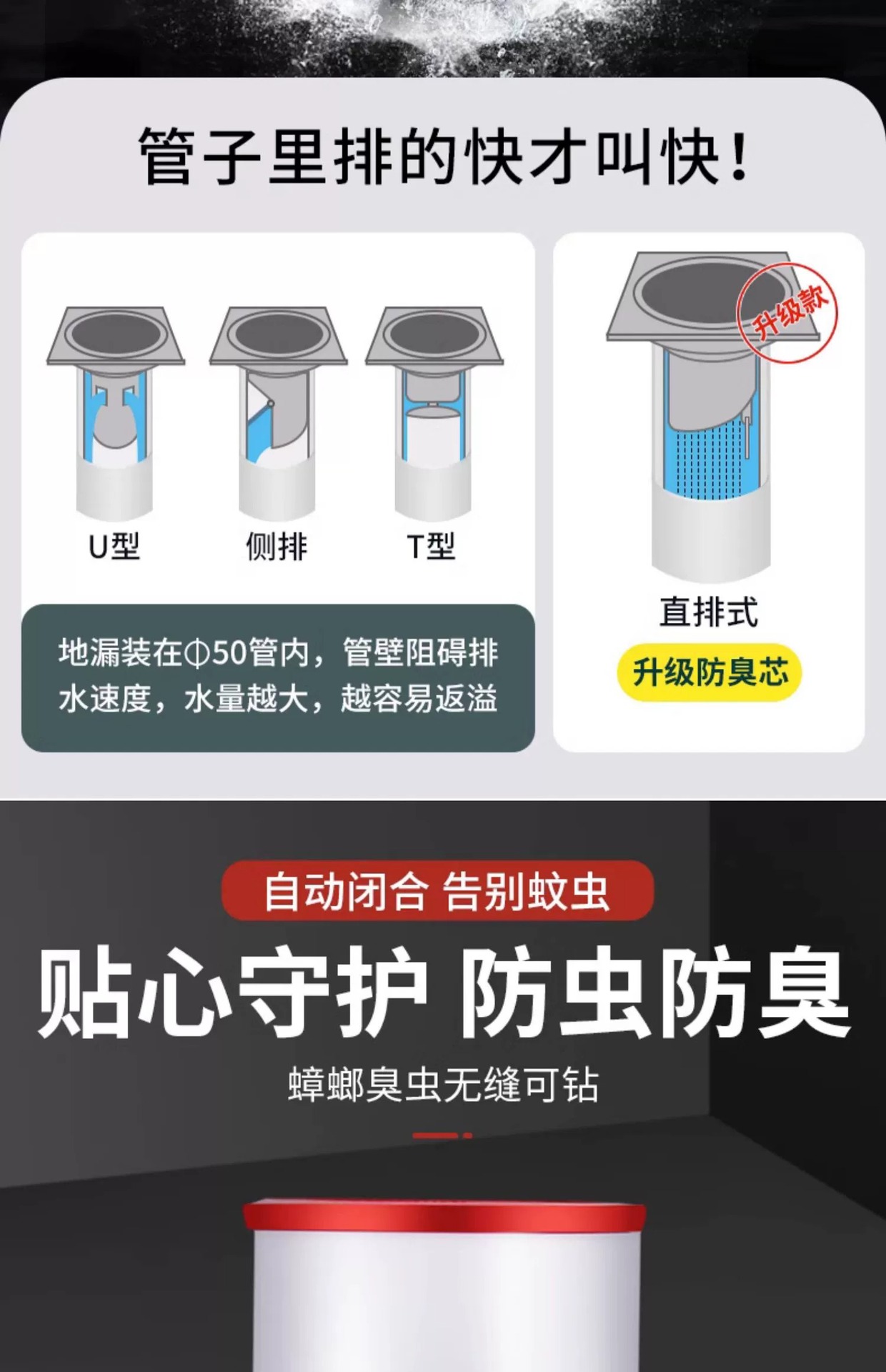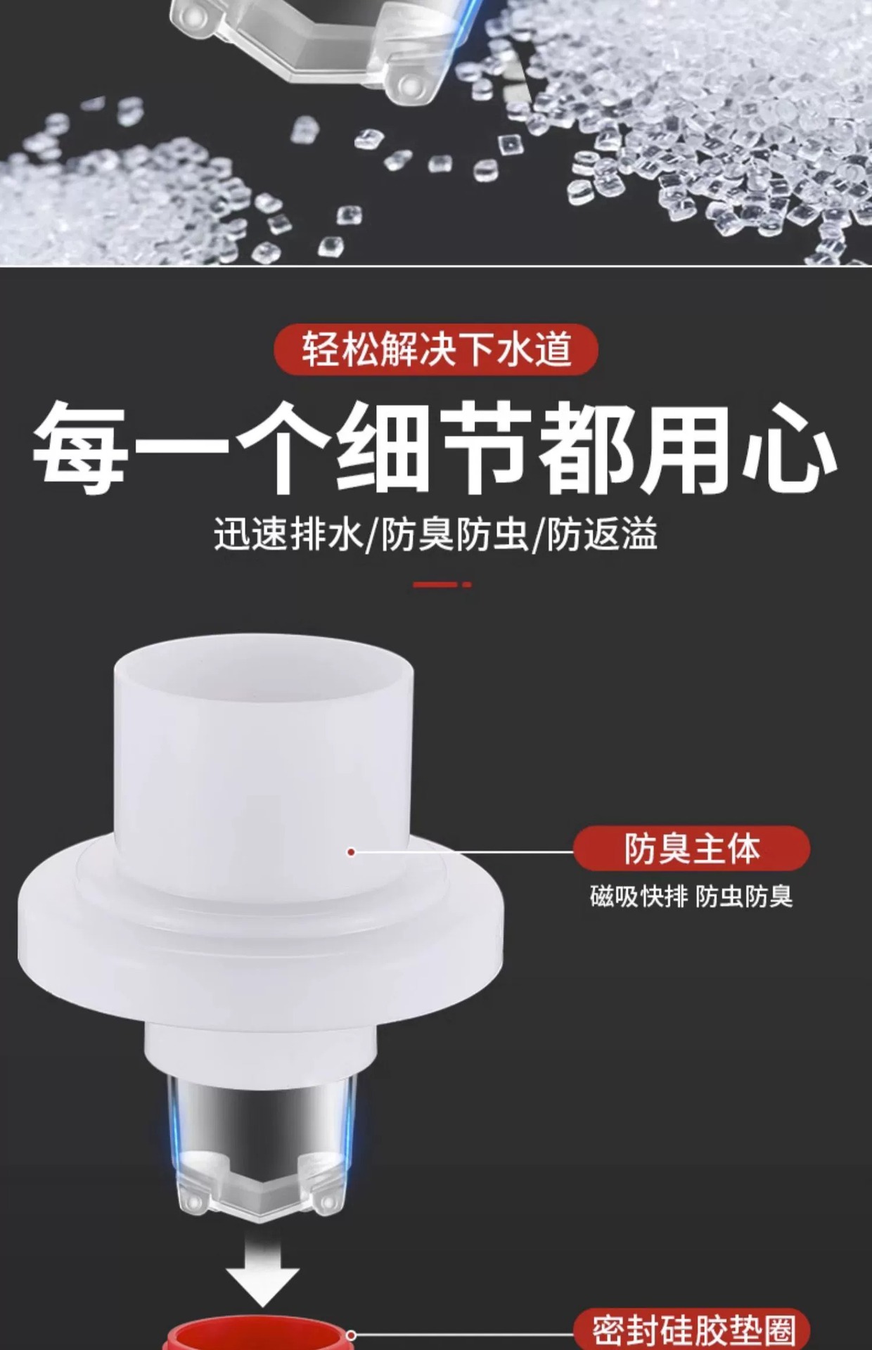 台所下水管防臭神器排水管防臭シールリング溢水反水菜盆栓部品