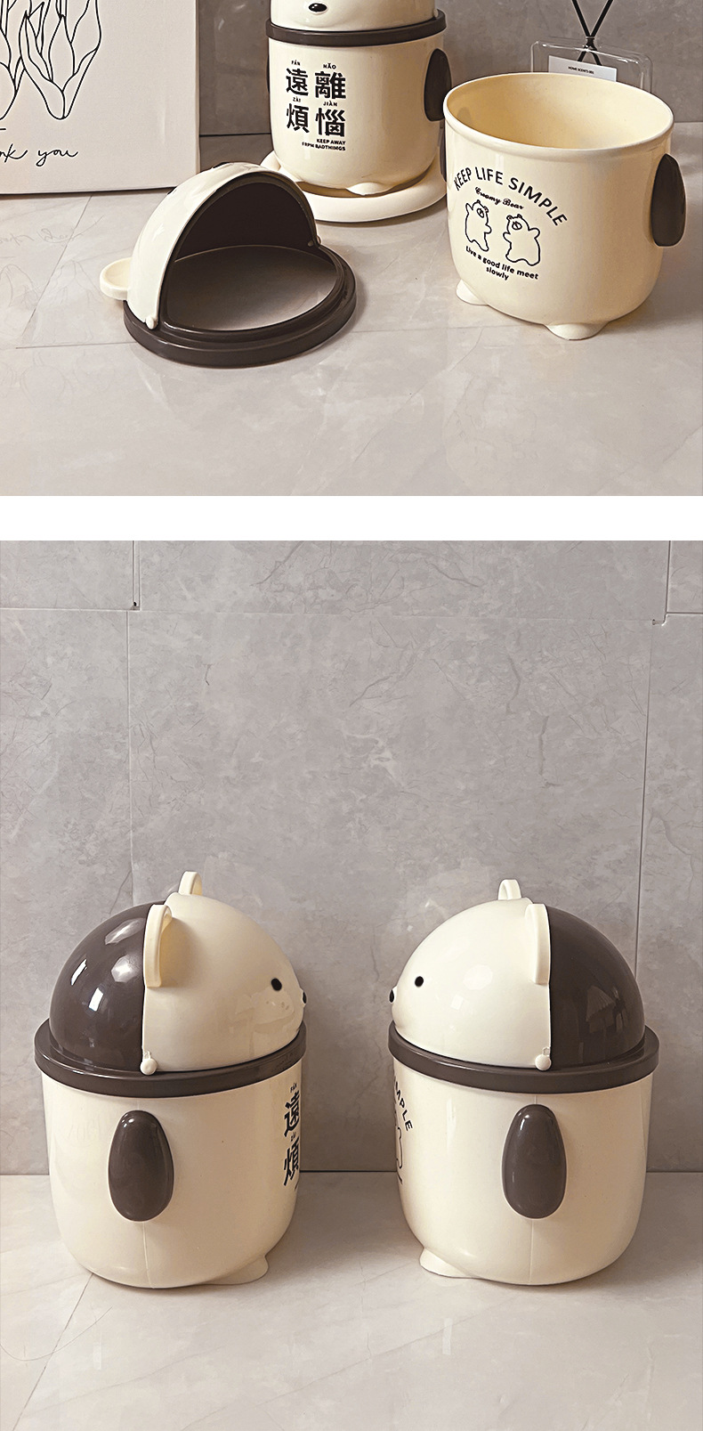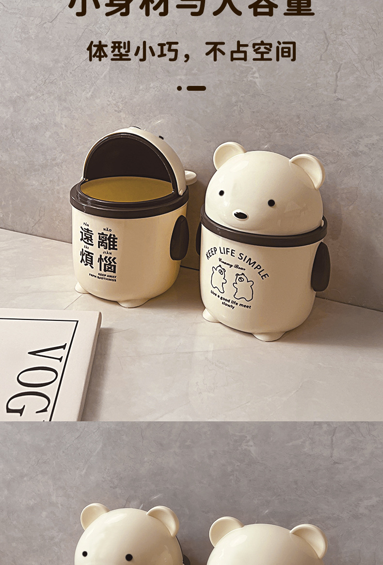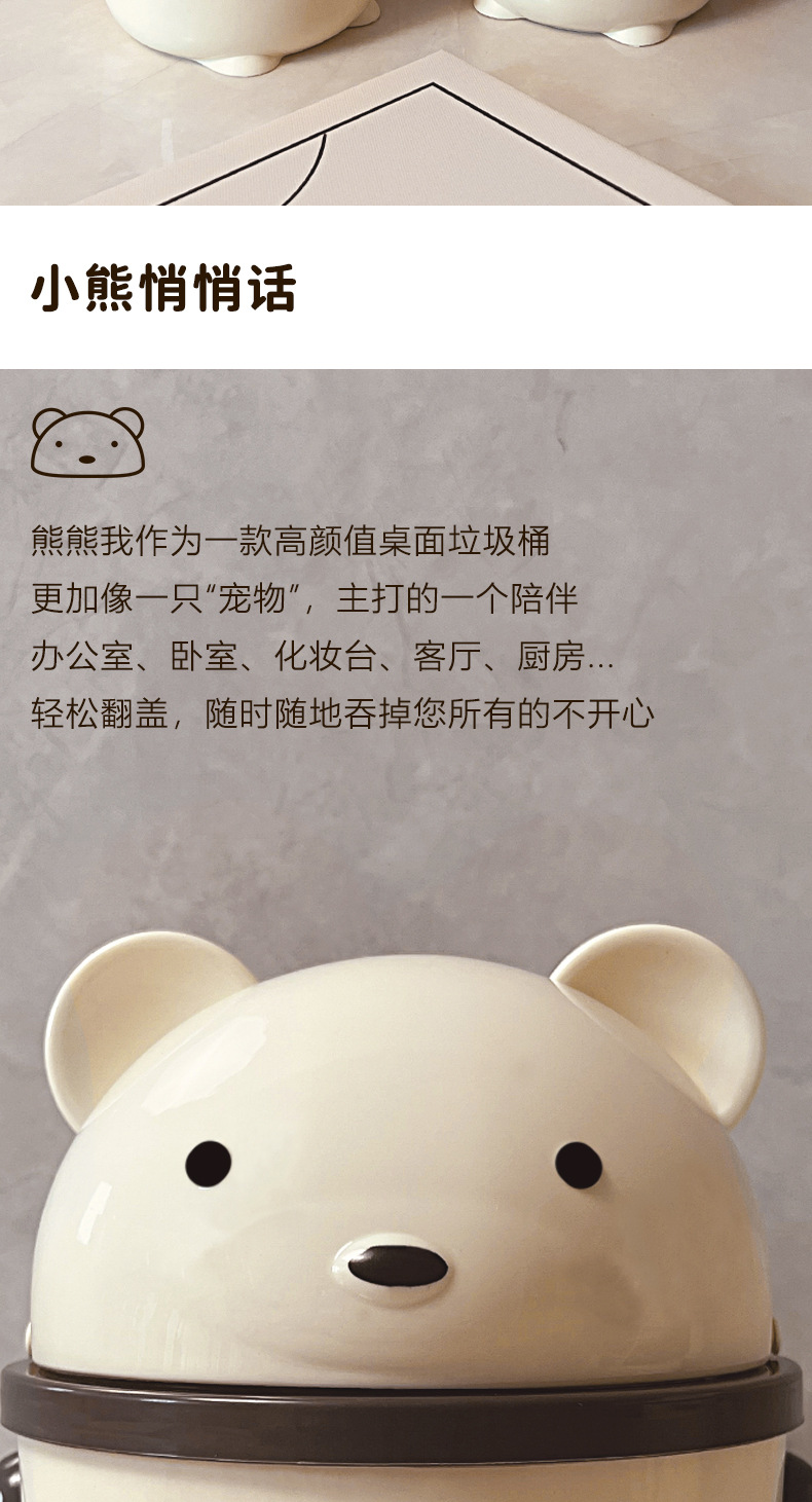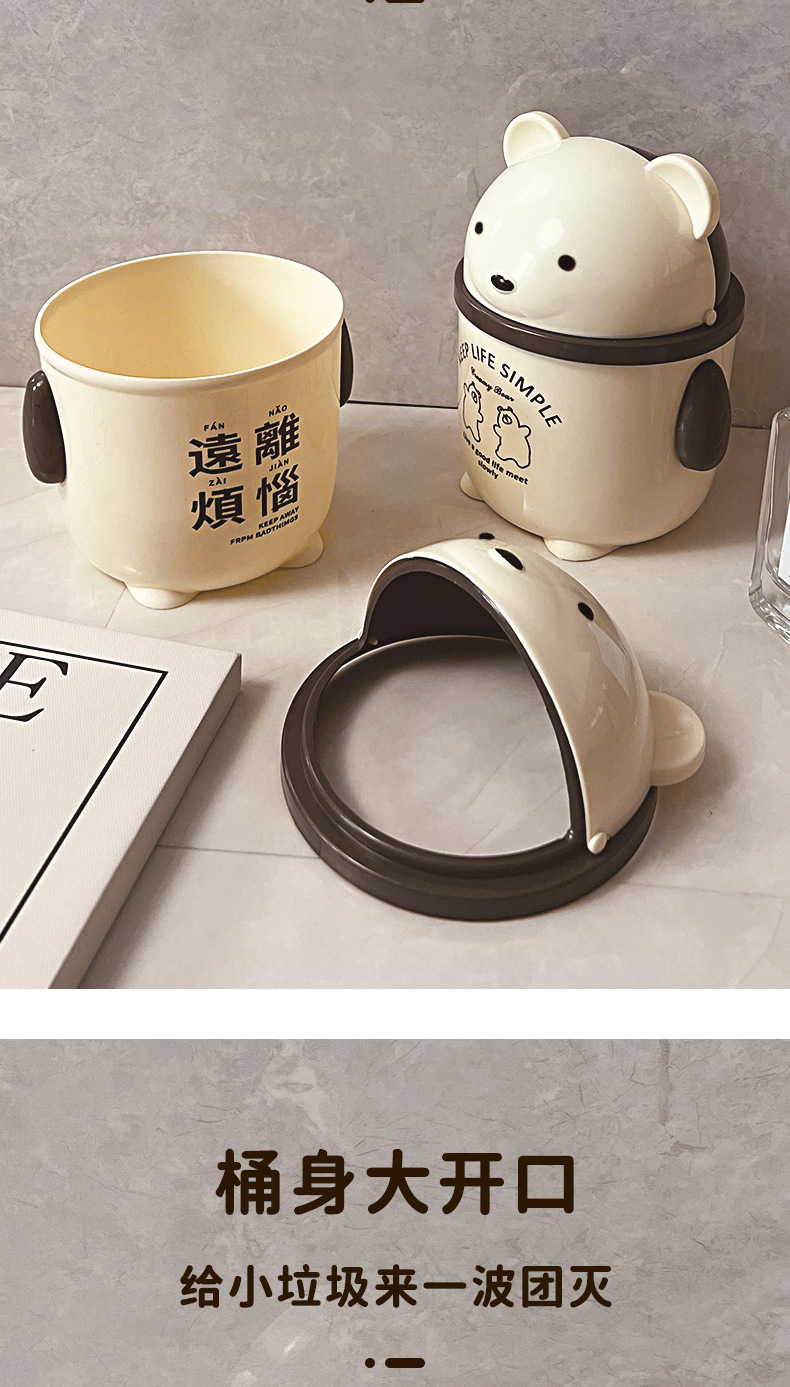 ホームリビングルームデスクトップコーヒーテーブルかわいいスタイルゴミ箱学生寮ベッドサイドクリームスタイル高価値クマ紙バスケット