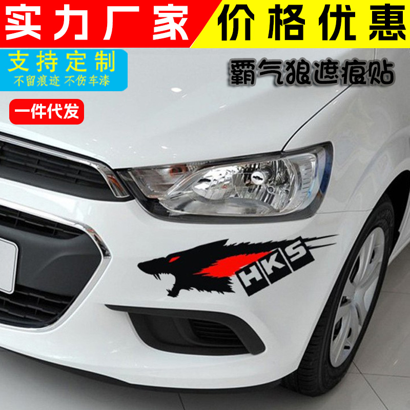 車のステッカーの傷は前のバーの大きい長さを遮って個性のアイデアの輪眉のランプの眉の帖の後でバンパーの車を覆います。