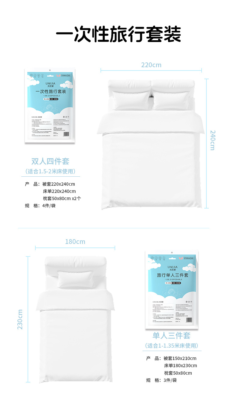 使い捨てベッドシーツ、掛け布団カバー、枕カバーの4点セット、旅行必需品、個別包装、五つ星ホテルの寝具、旅行用