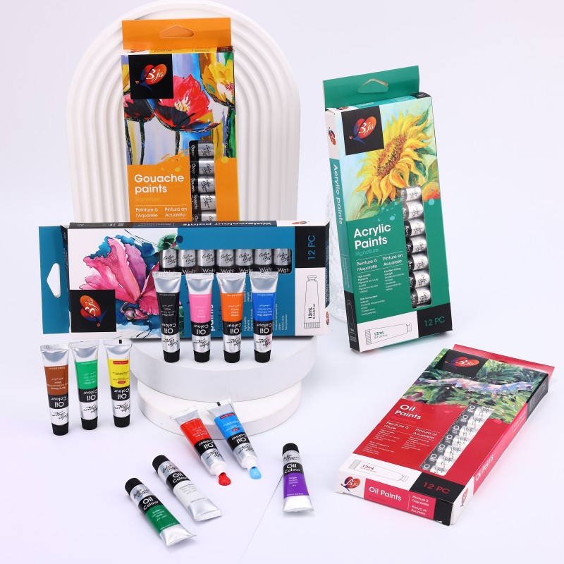 12色9ml水彩アクリル油絵絵の具絵の具学生お絵かき用品セット絵画手描き