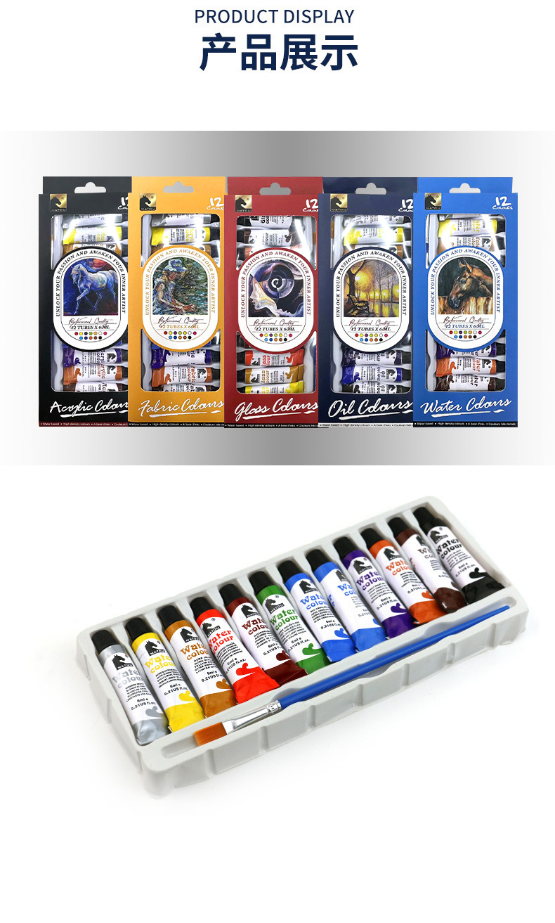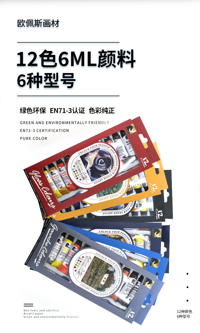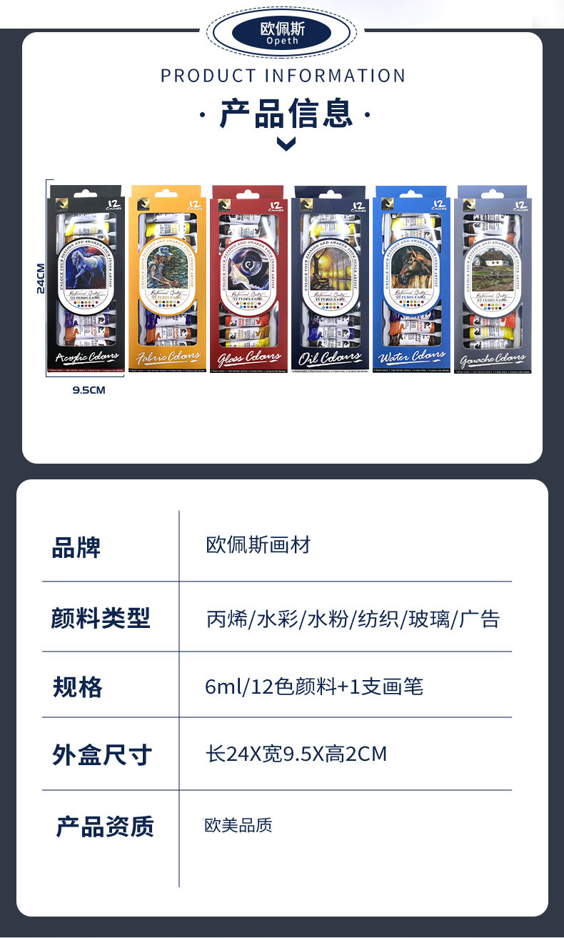 跨境12色丙烯颜料6ml水粉丙烯油画颜料 美术专用绘画墙绘颜料套装
