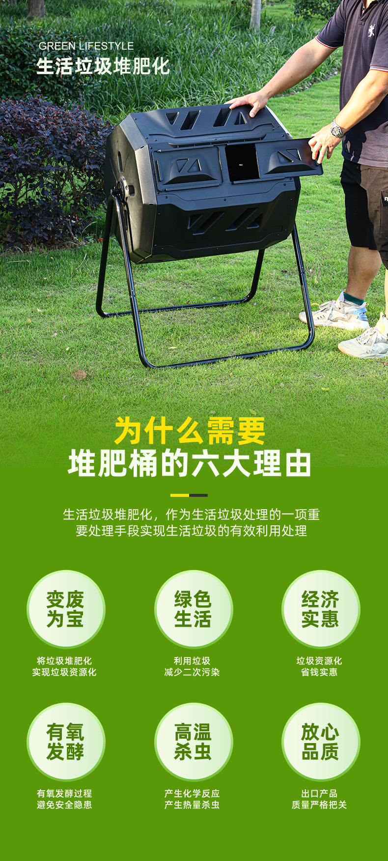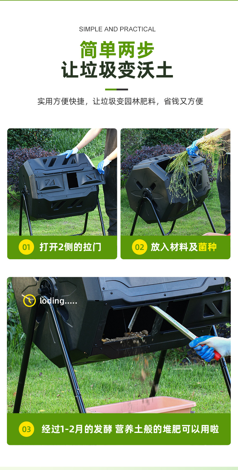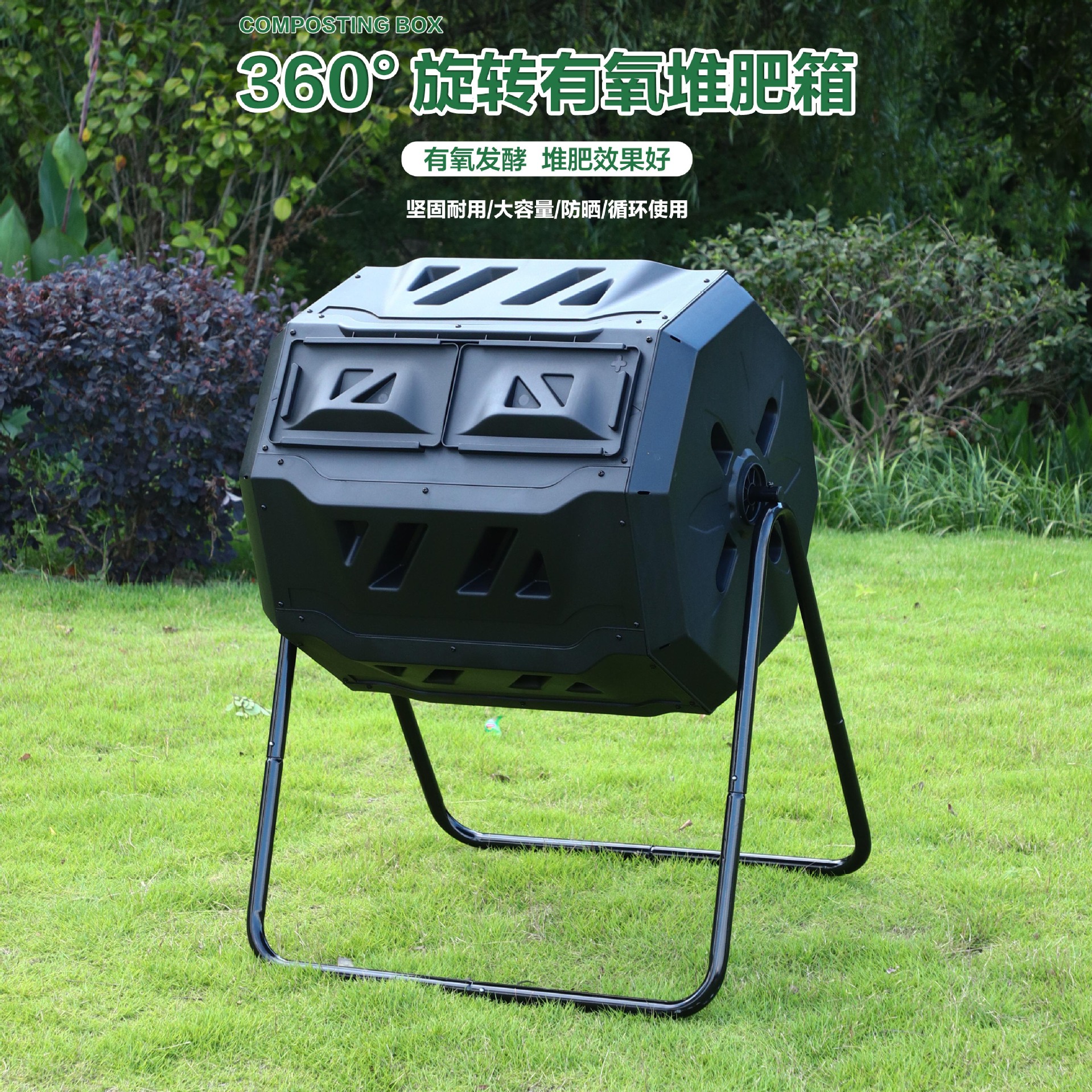 跨境旋转滚筒有氧堆肥桶厨余落叶发酵箱家用庭院花园大容量沤肥桶