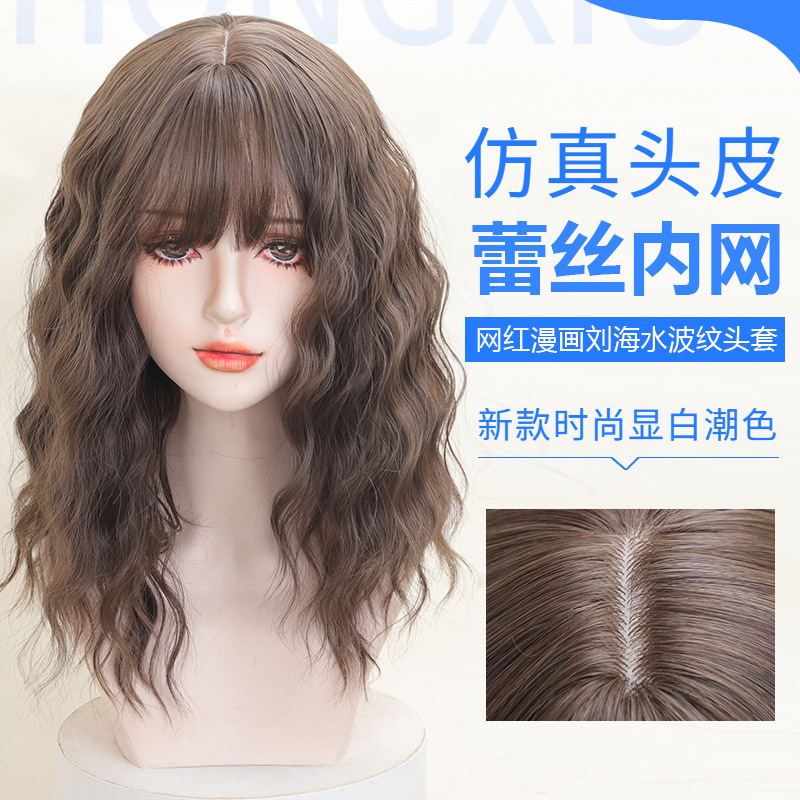 ふわふわウール巻きかつらセット水波紋かつら女性長巻全頭セット漫画前髪ネット赤丸顔オムレツ