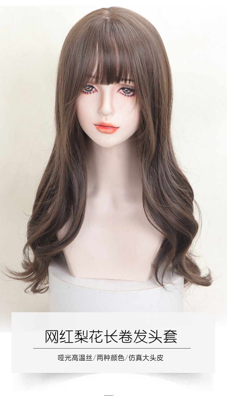 レイヤードロングカールふわふわナシ花巻かつらカバー大きい波かつらレディースロングヘアフルヘッドカバー漫画前髪
