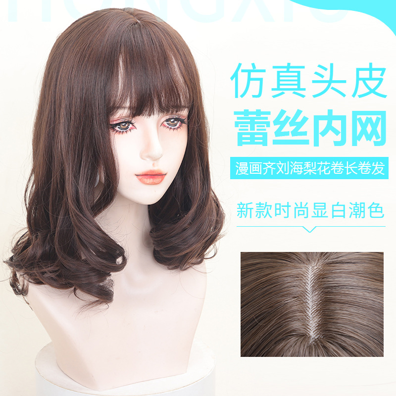 梨花巻かつら女性鎖骨全頭セット式漫画前髪lolita斉肩髪ふわふわ水波紋かつらセット