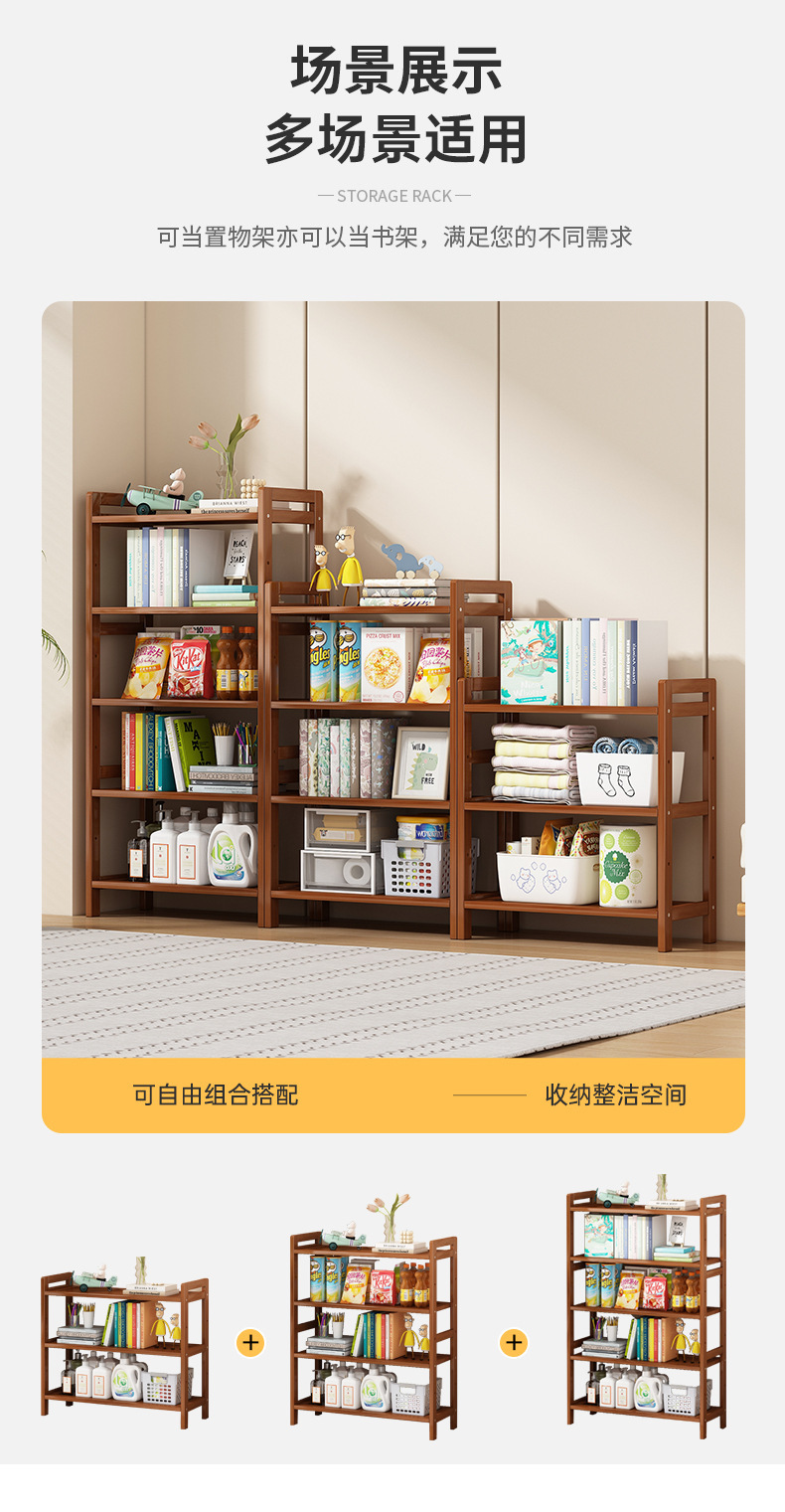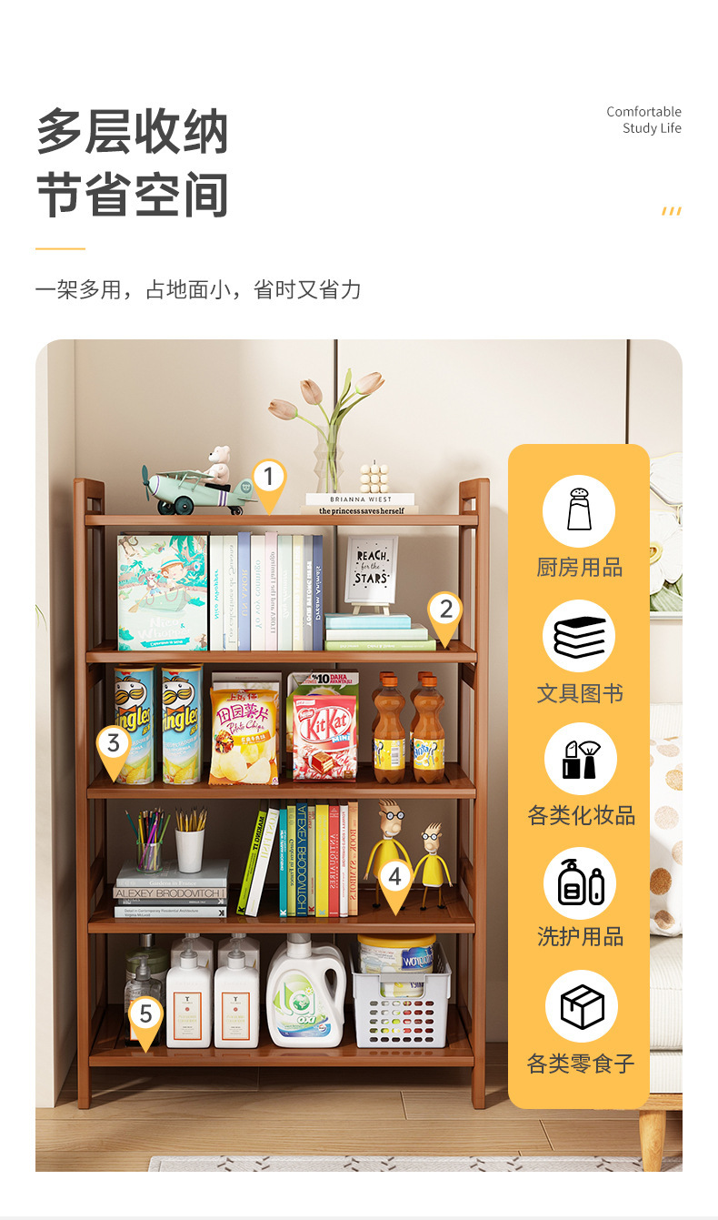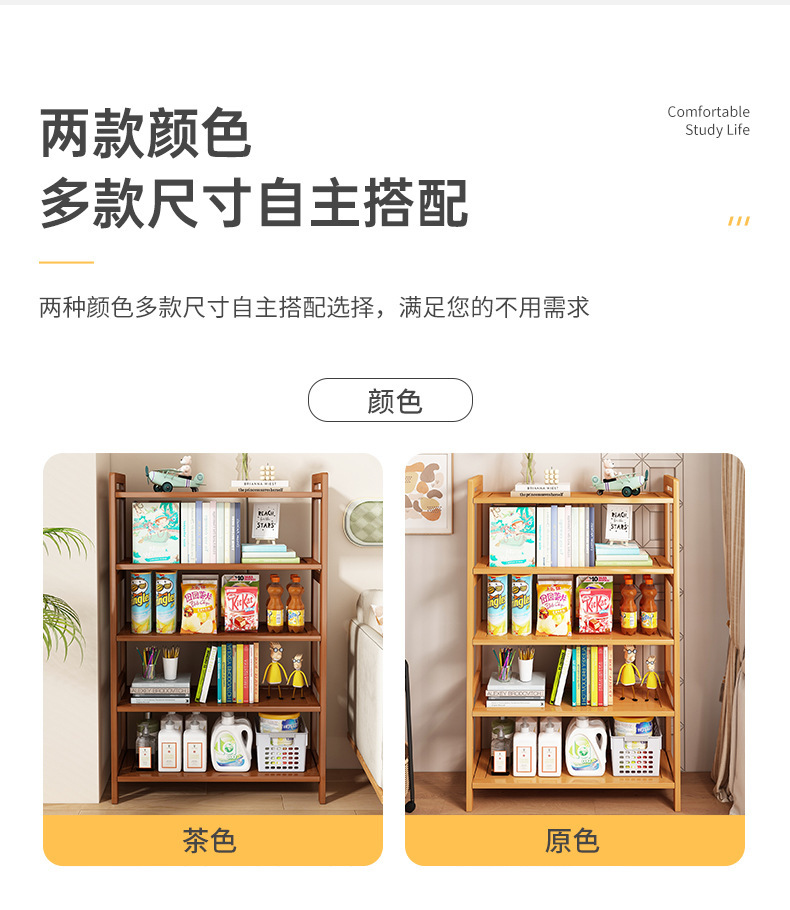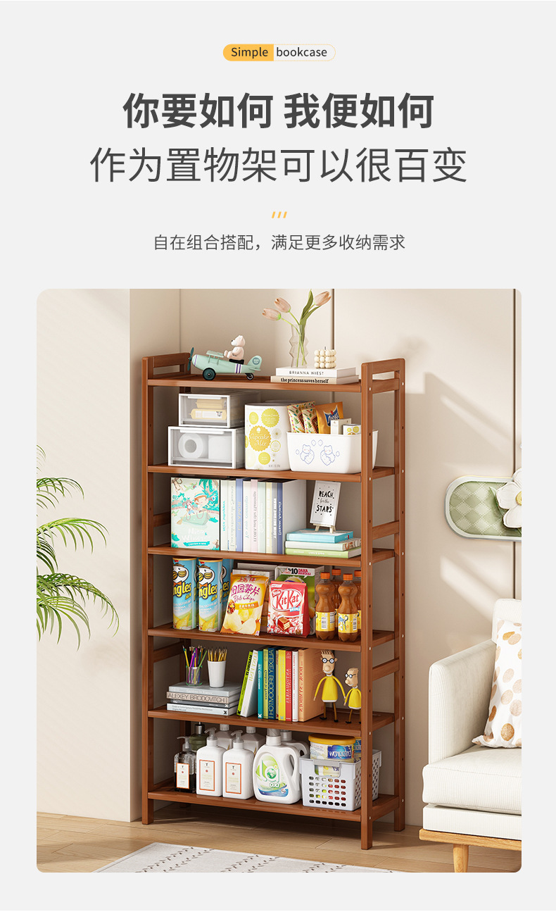置物架多层收纳架子落地简易厨房多功能书货架楠竹家用零食储物架