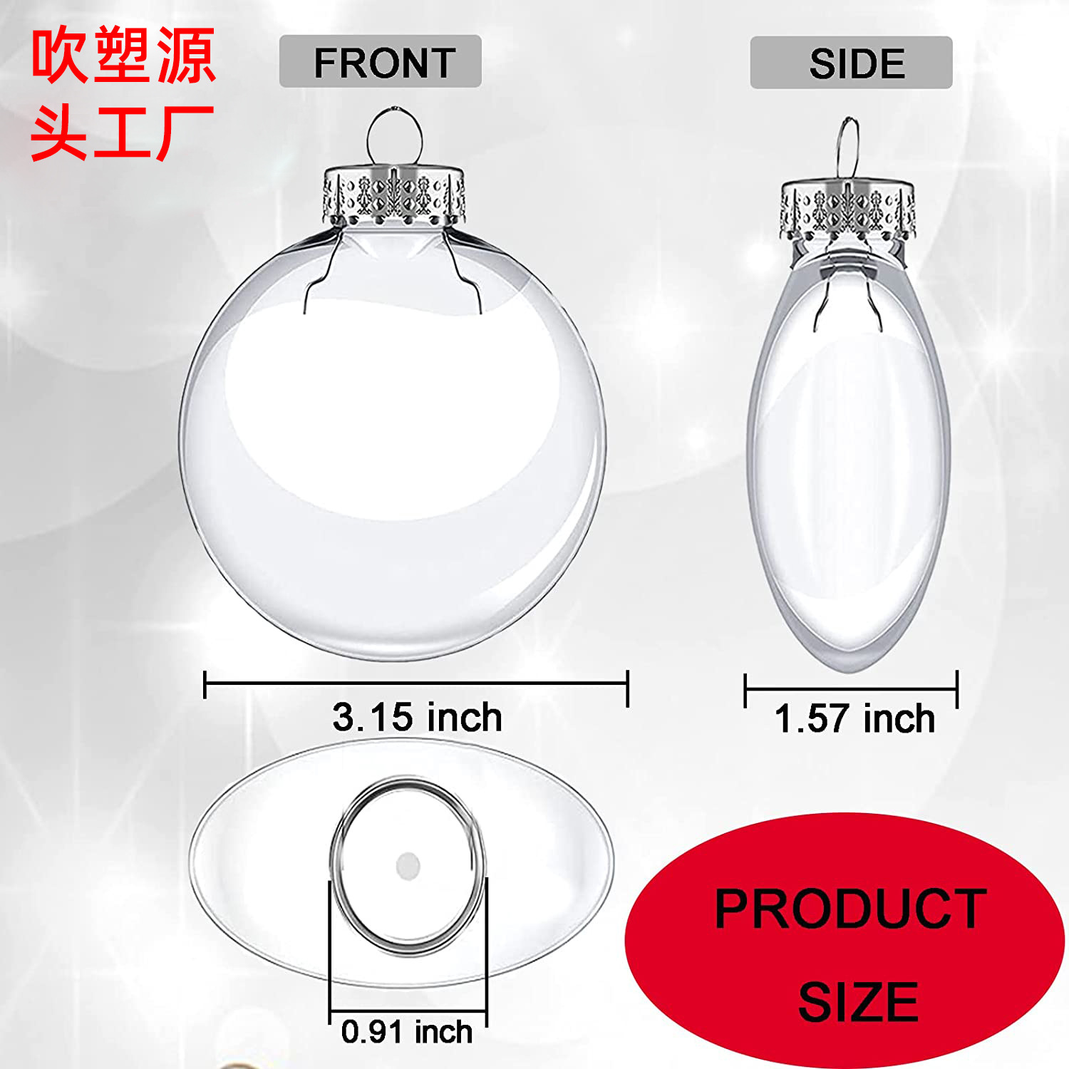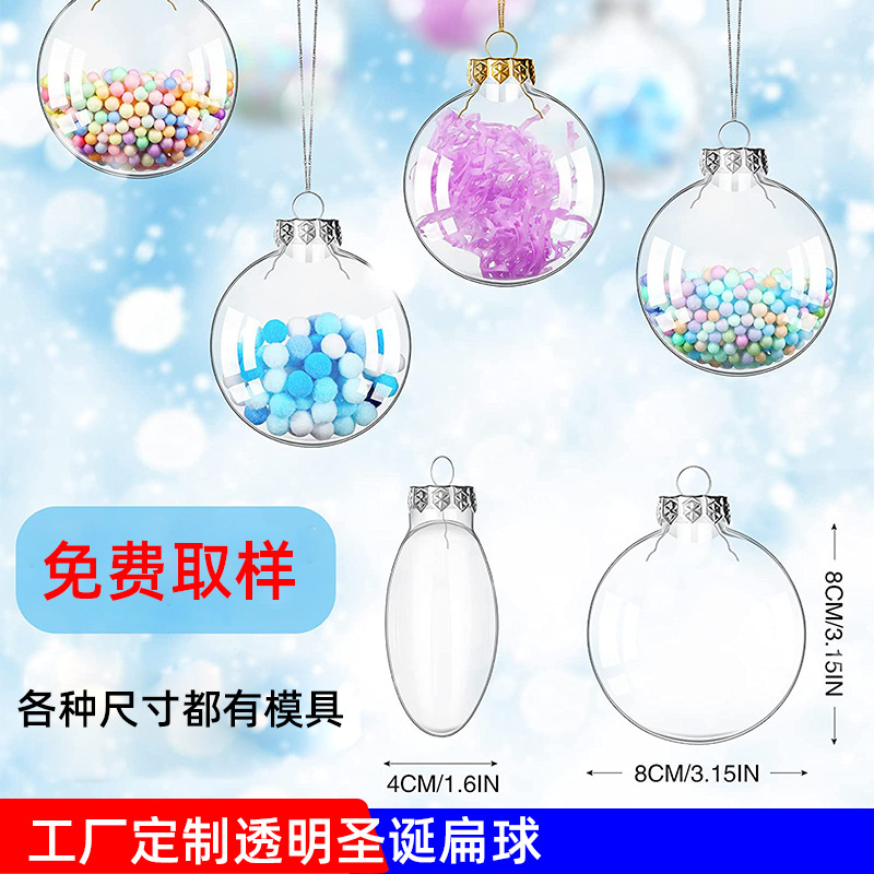 8cm10cm透明クリスマスフラットボールプラスチック装飾ボール、DIYクラフト充填可能なクリスマスデコレーションボール、