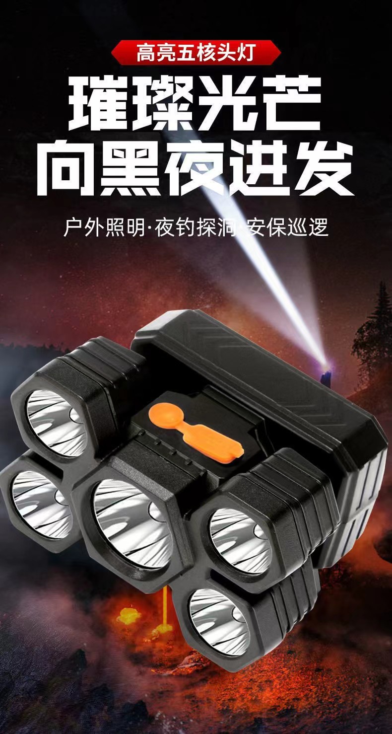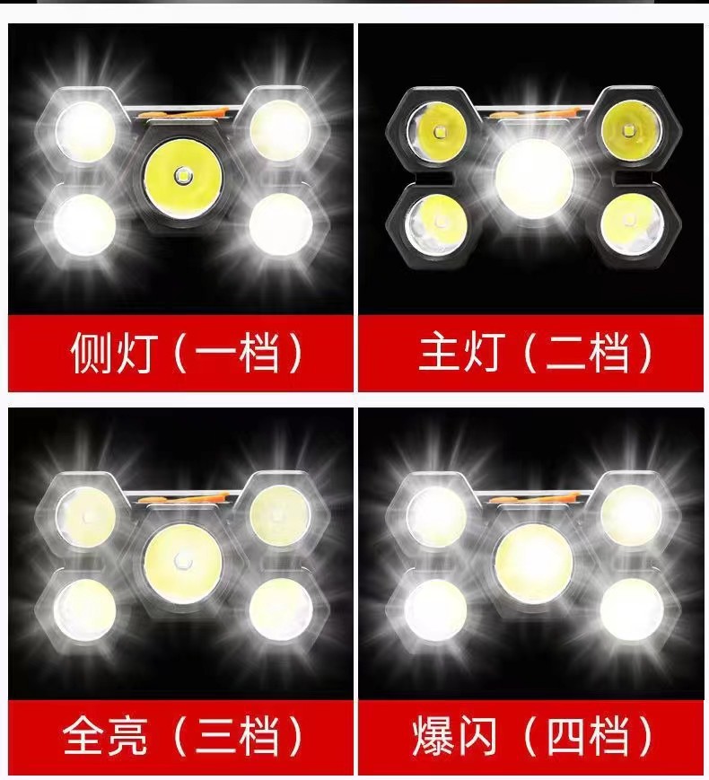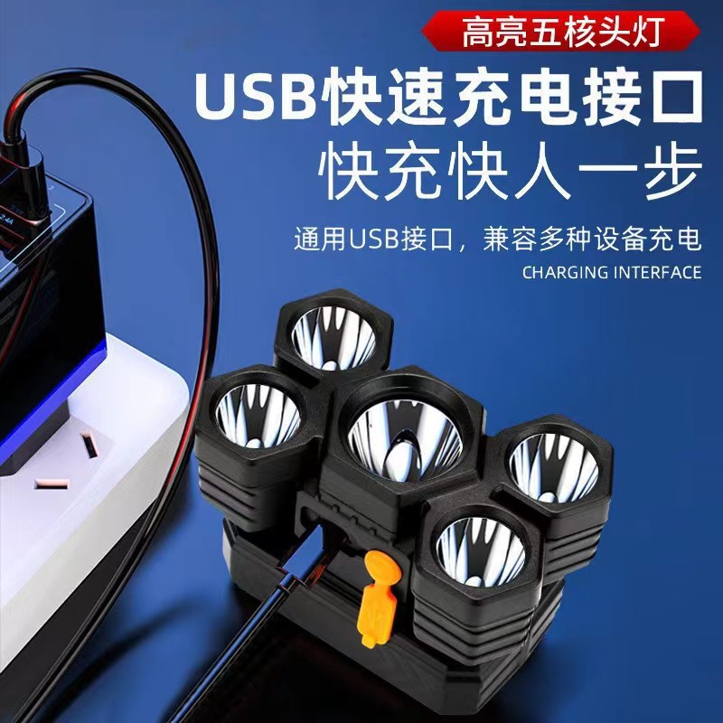 ヘッドライト屋外家庭用ledヘッドライト5ヘッド充電可能usb多機能夜釣りライト鉱山ライト