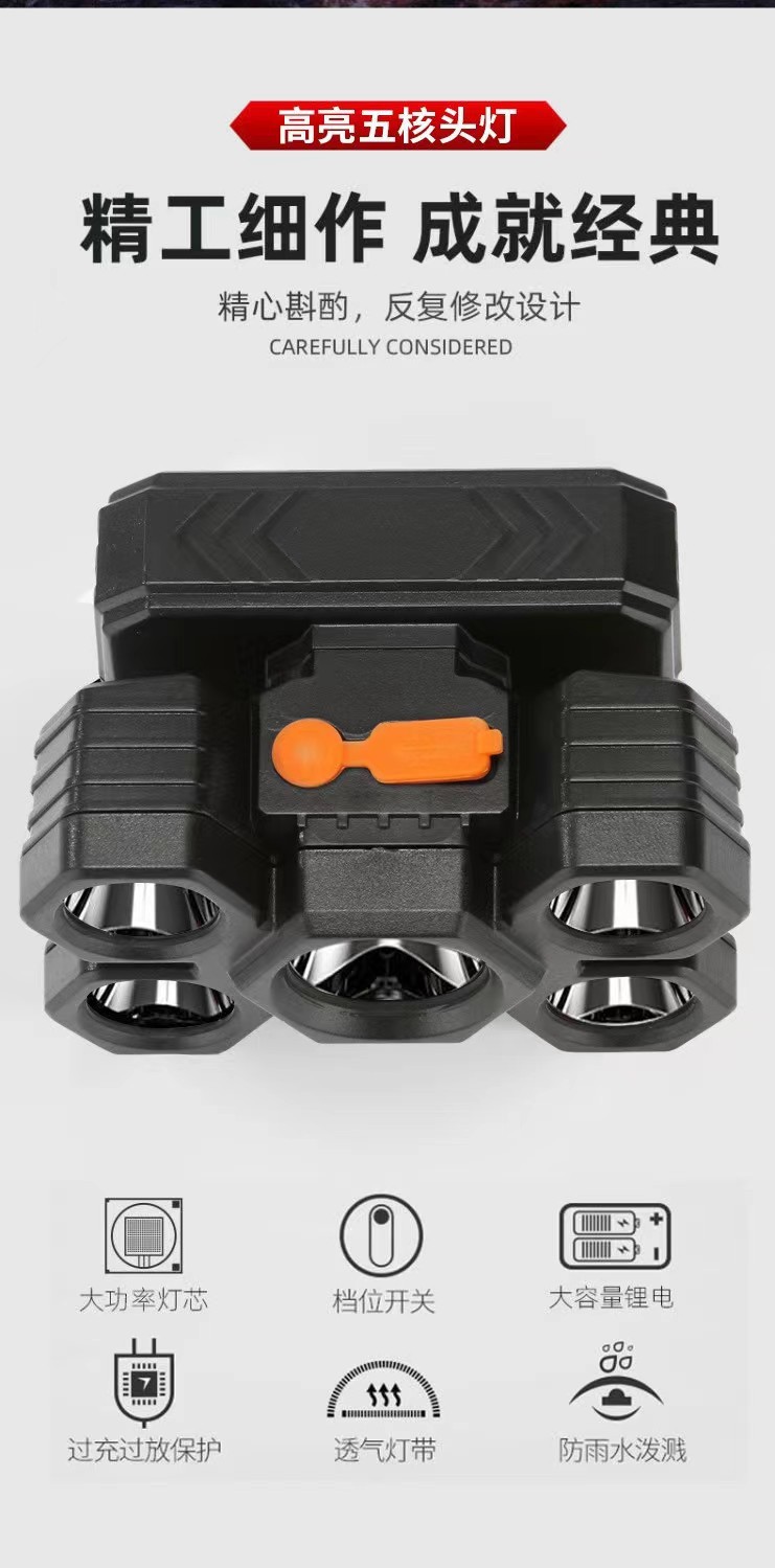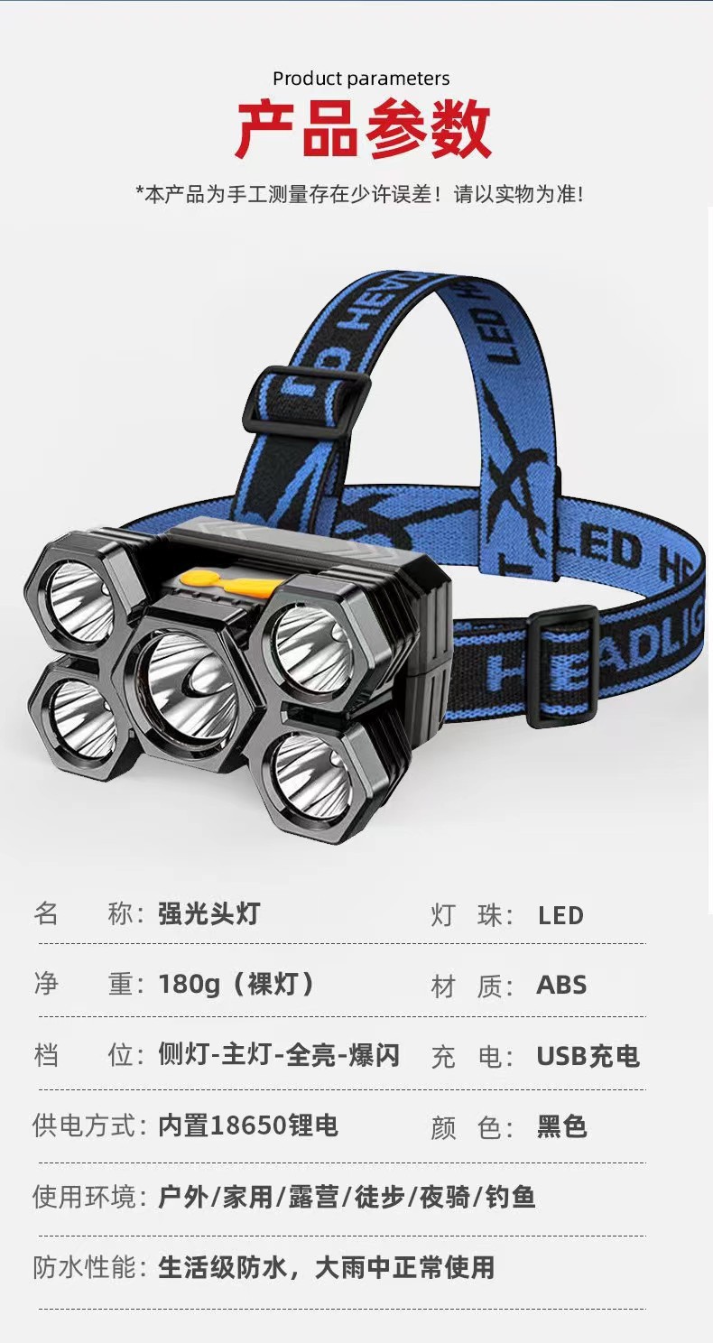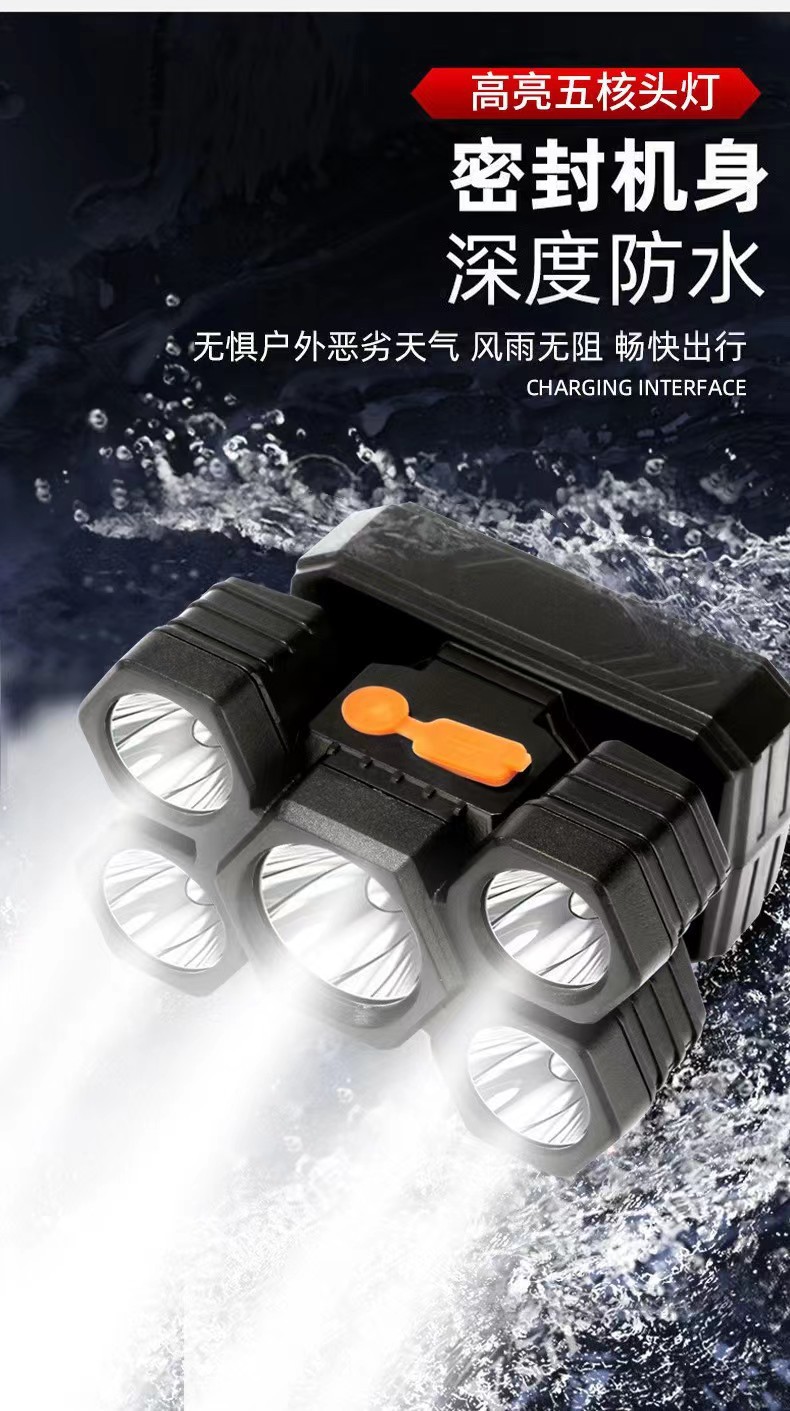 クロスボーダー音5頭強光遠射ヘッドライトusb充電アウトドア夜釣りライト野外キャンプライト作業ヘッドセット
