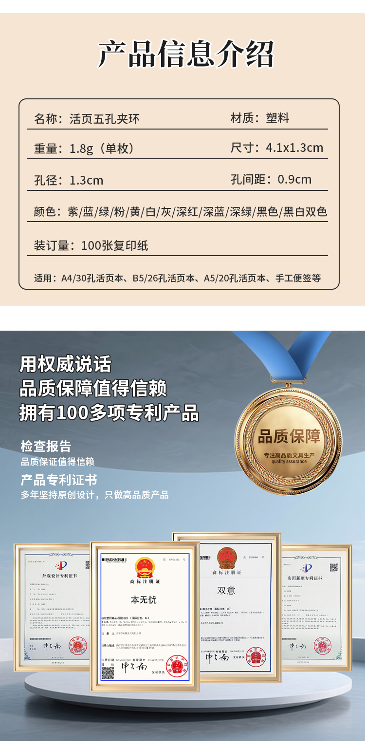 4穴バインダークリップ手作りバインダー収納手帳diy四穴分割式プラスチックバインダーリング多色ファイル