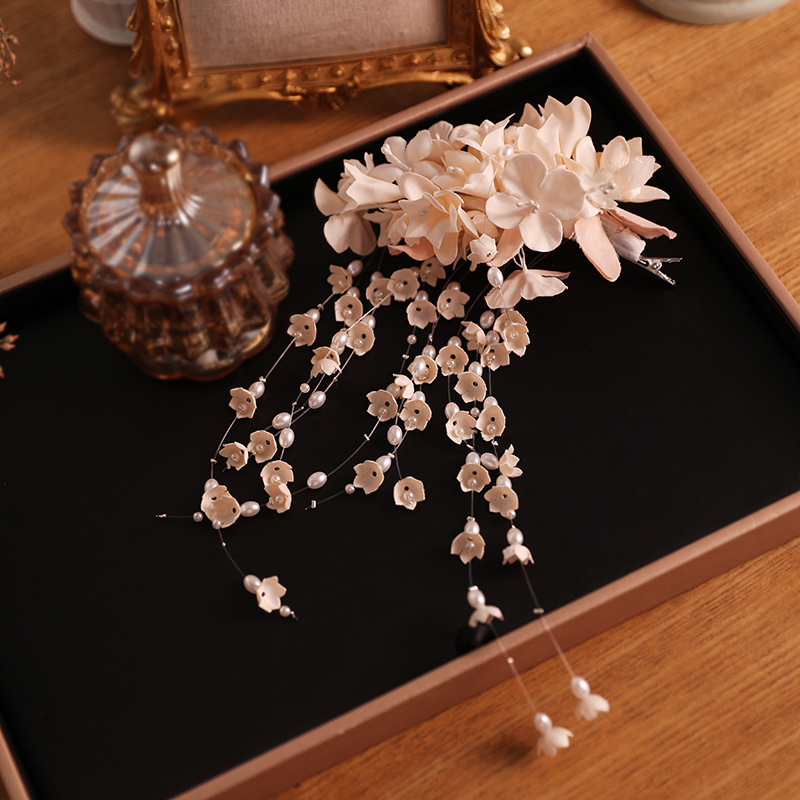 韓国式超仙頭飾り鈴蘭花手作りフリンジヘアクリップレトロウェディングドレス髪飾り森系花嫁アクセサリー