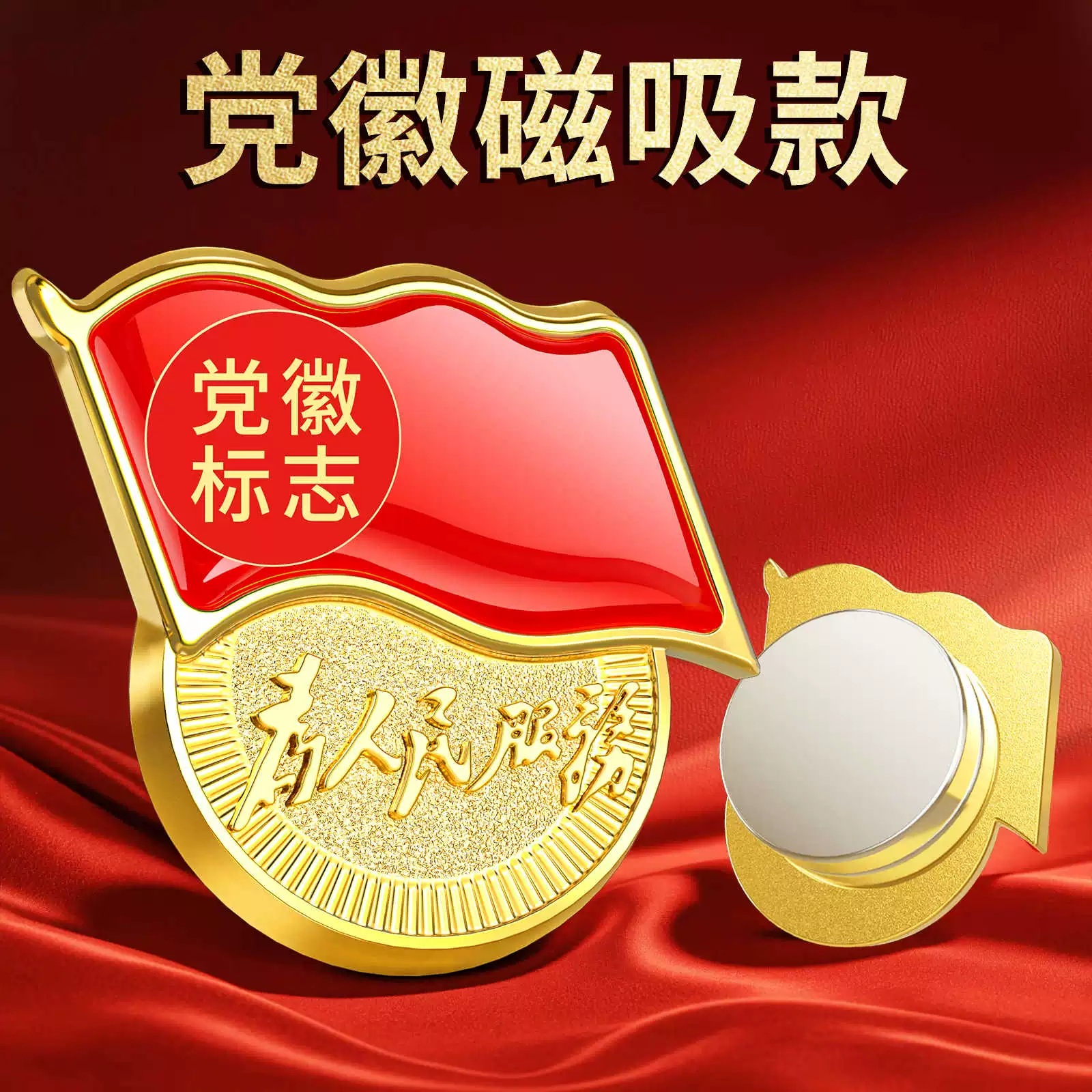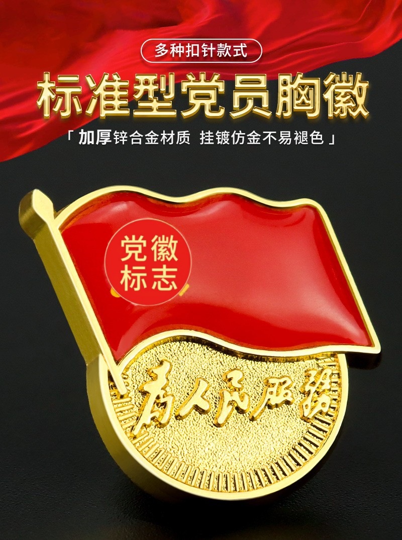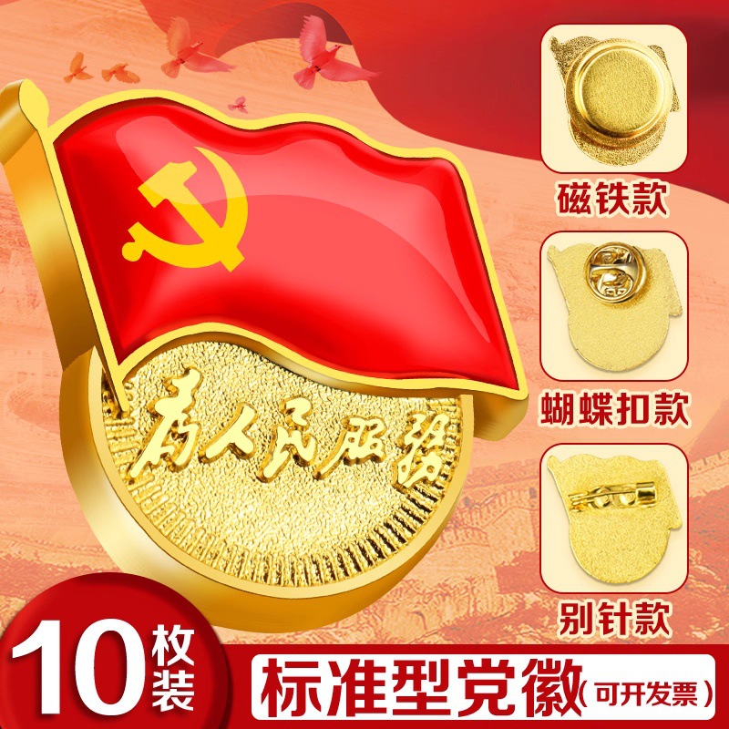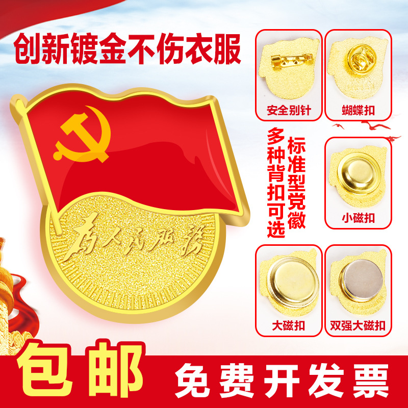 党徽别针胸徽滴胶加厚强磁磁扣磁铁党徽胸章金属款为人民服务党徽