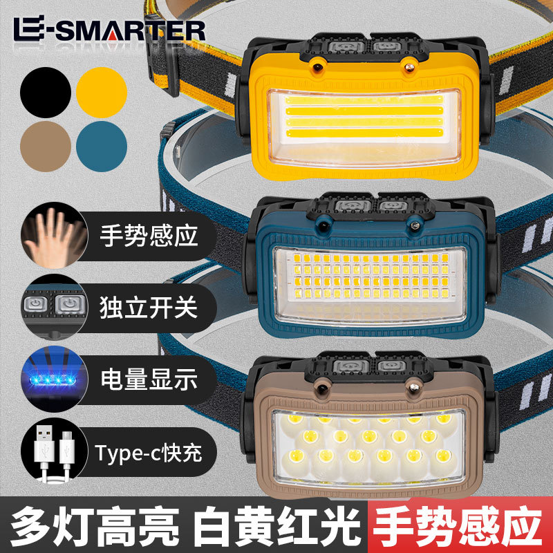 超明るいクロスボーダー強い光感応ヘッドライト鉱山ライトusb充電緊急スマートヘッド装着式屋外照明懐中電灯
