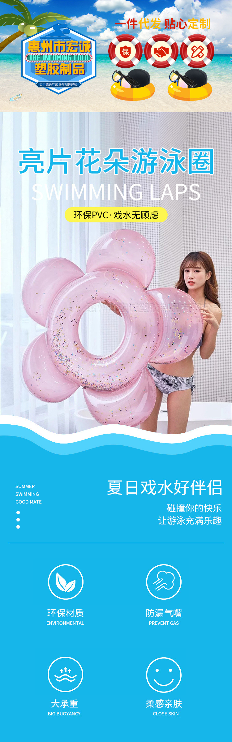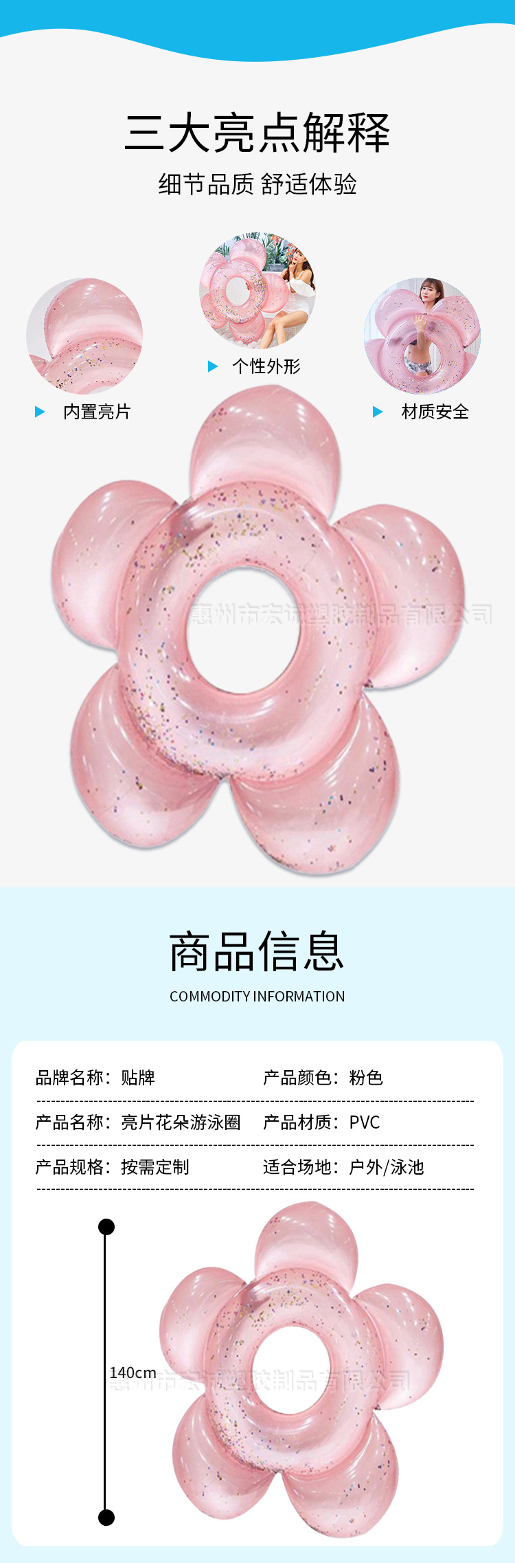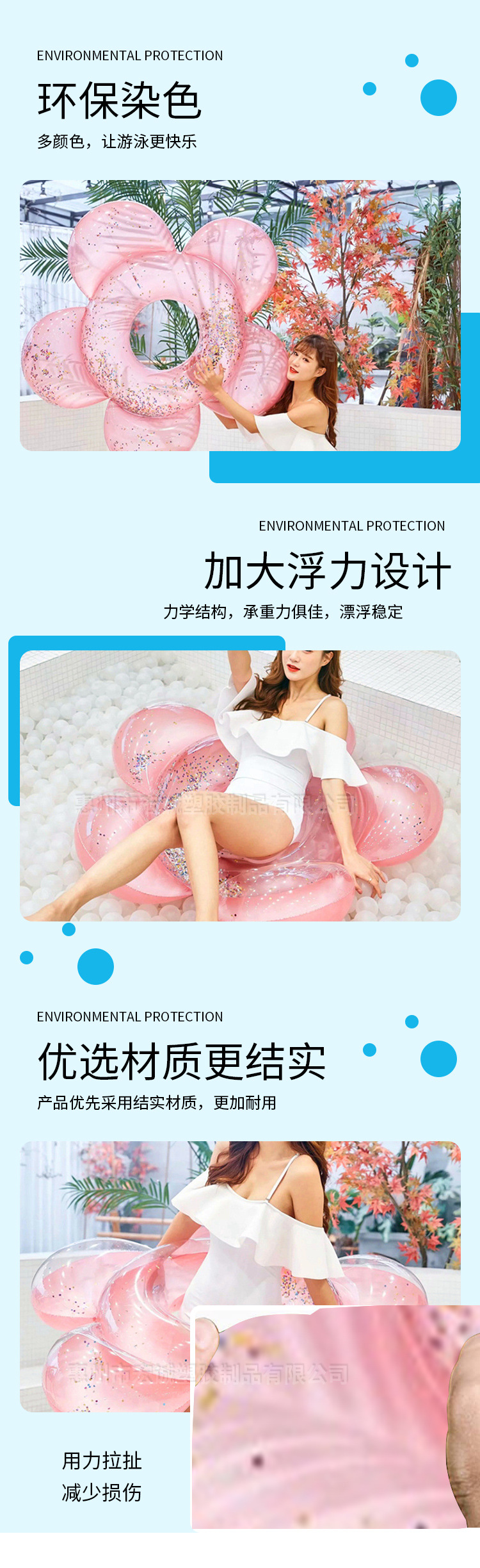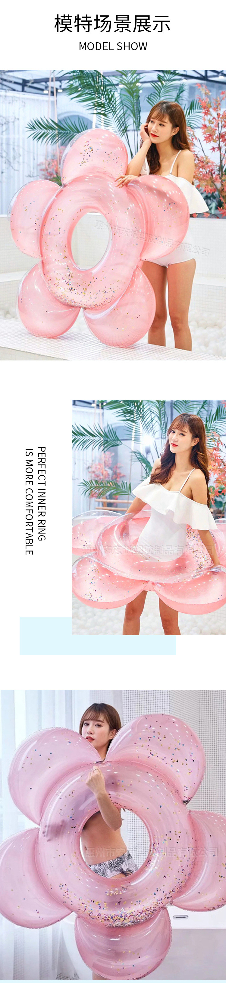 クロスボーダーpvcインフレータブル透明スイミングリングクリエイティブ新品ピンク花スパンコールフローティングスイミングリング