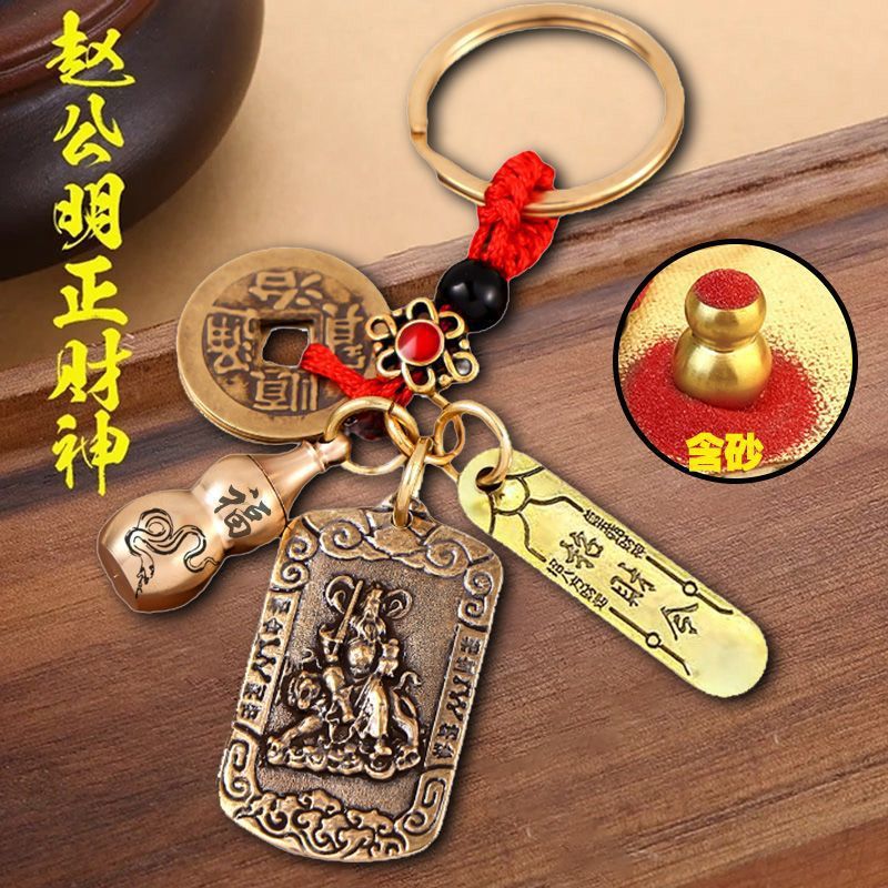 純黄銅五路武財神趙公明トークン車のキーホルダー