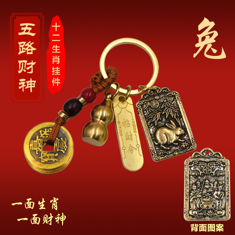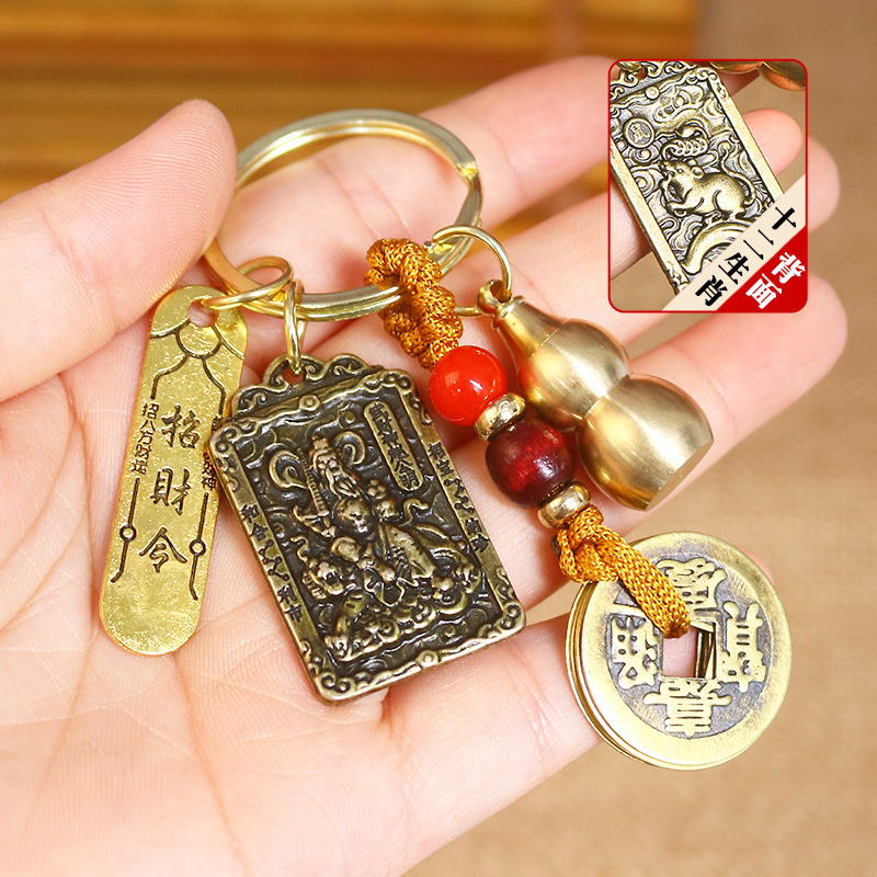 真鍮製五方財神趙公明、富を呼び込む五帝のひょうたん、十二支キーホルダーペンダント、車用卸売