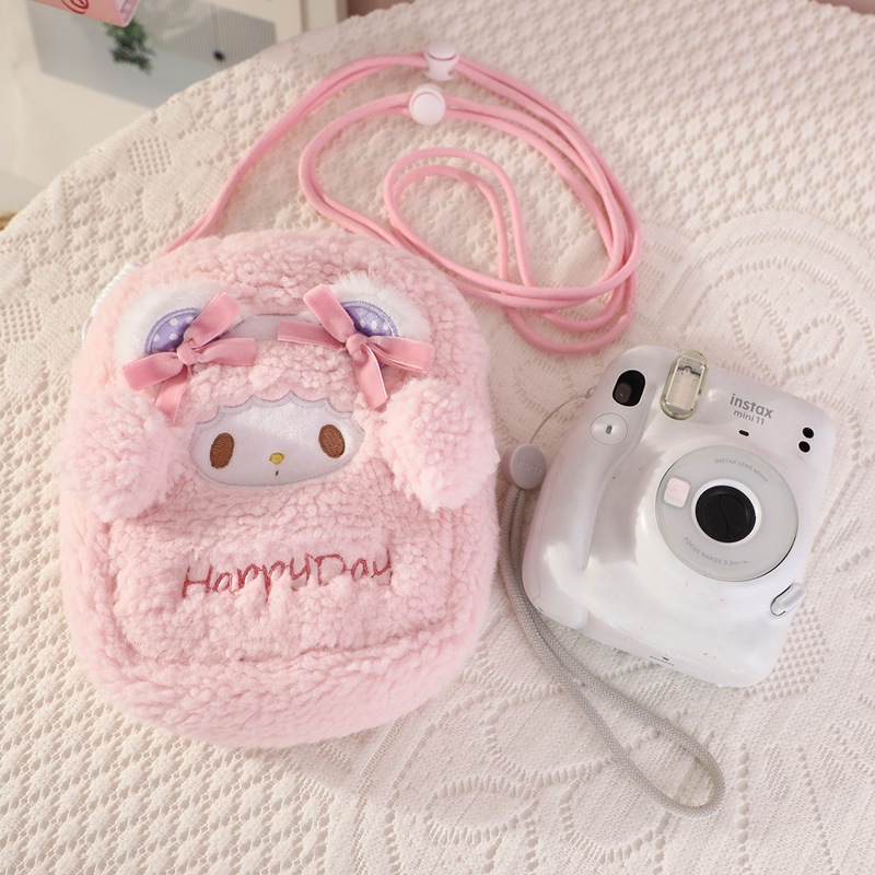 卡通库洛米美乐蒂毛绒相机包手机斜挎包零钱包化妆品杂物收纳小包