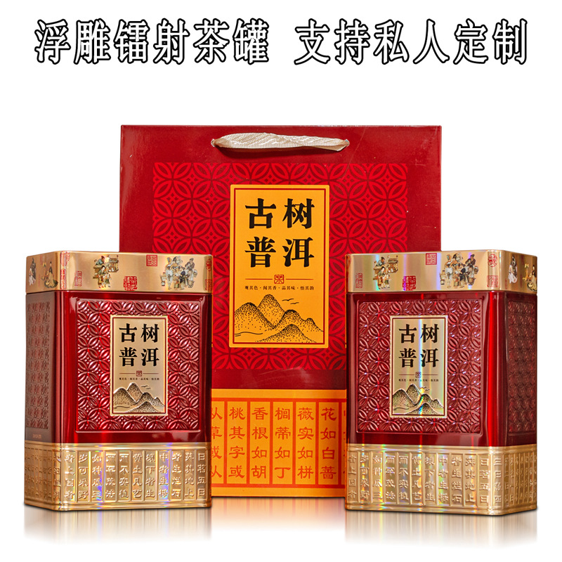 古樹プーアル通用散茶包装缶立体レリーフ茶葉缶圧紋レーザー缶鉄缶鉄箱大方缶