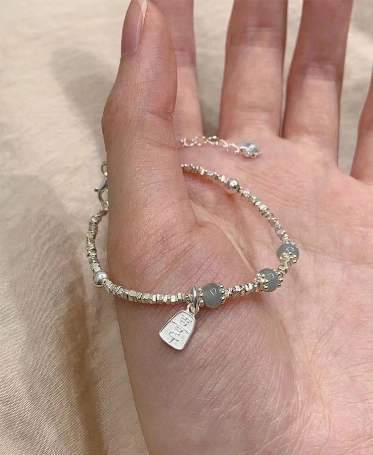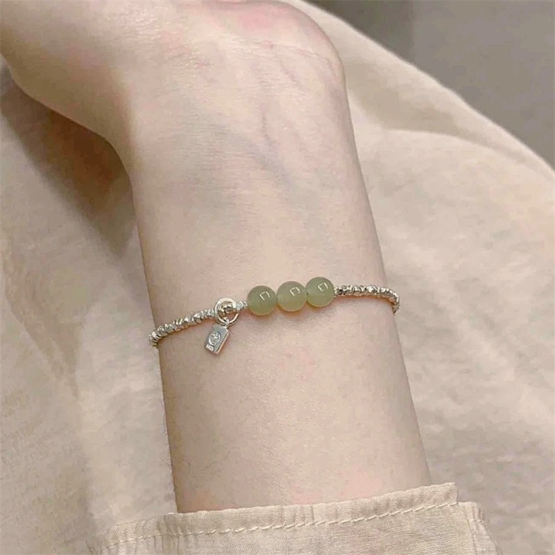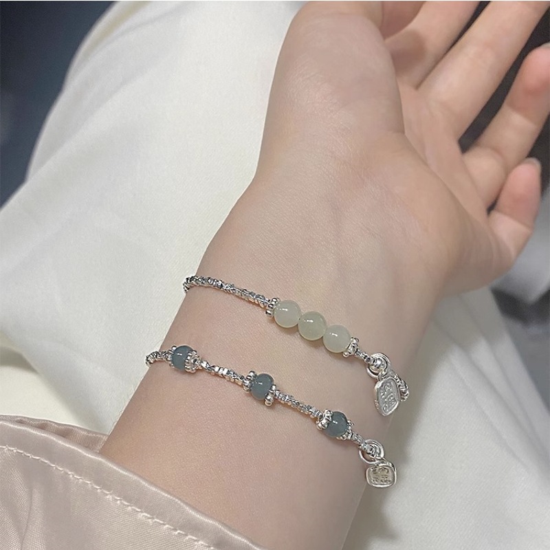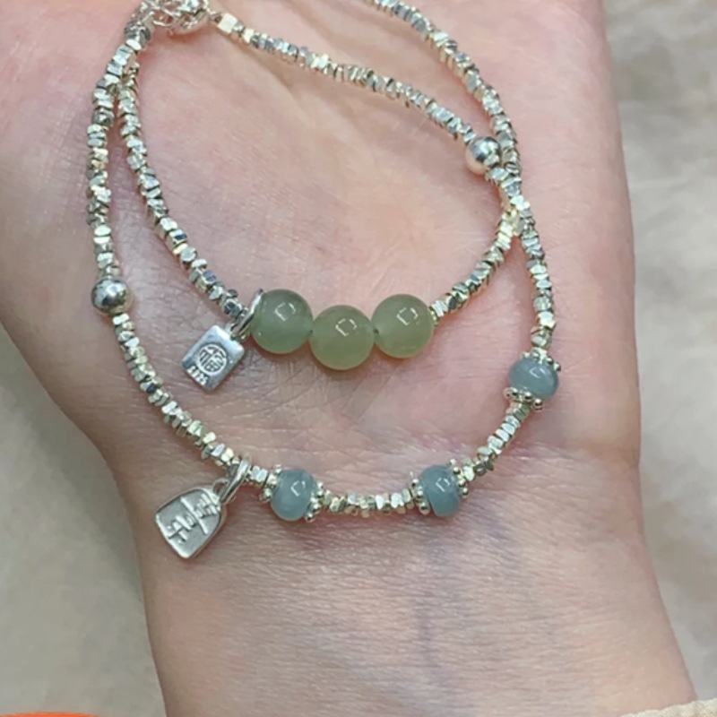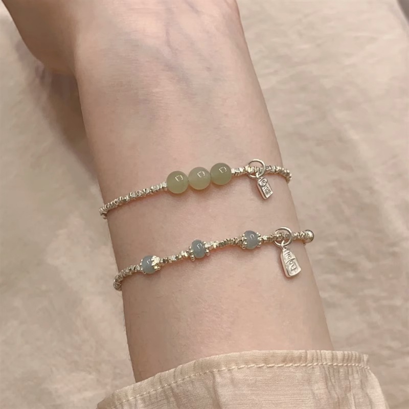 新商品S925純銀藍喜楽翡翠と田玉砕銀ブレスレットの軽豪華シンプルな日常女子プレゼント