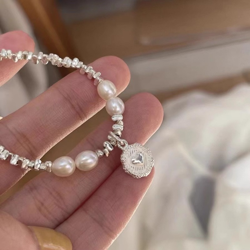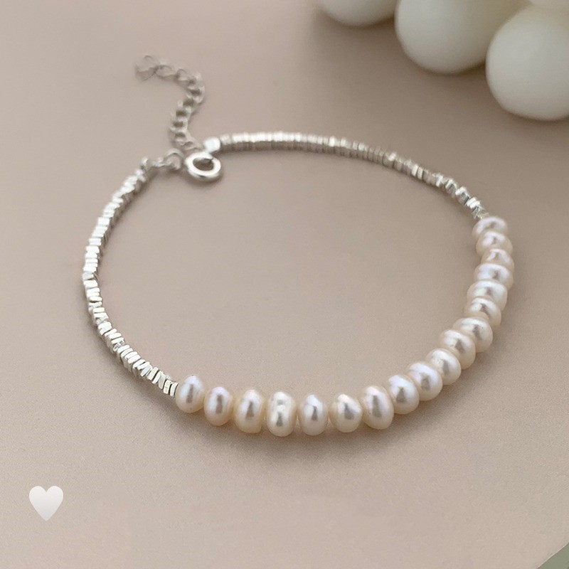 銀の真珠のブレスレットの女子学生の小衆の精巧な小さい米の玉の手の串の2025新型の百合の気質の誕生日の贈り物