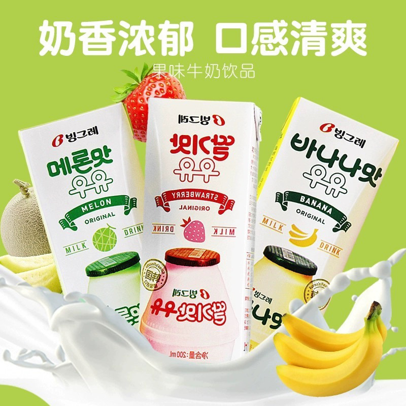 Binggrae韓国輸入ビンガリーバナナいちごメロン味乳飲料200ml飲料スナック