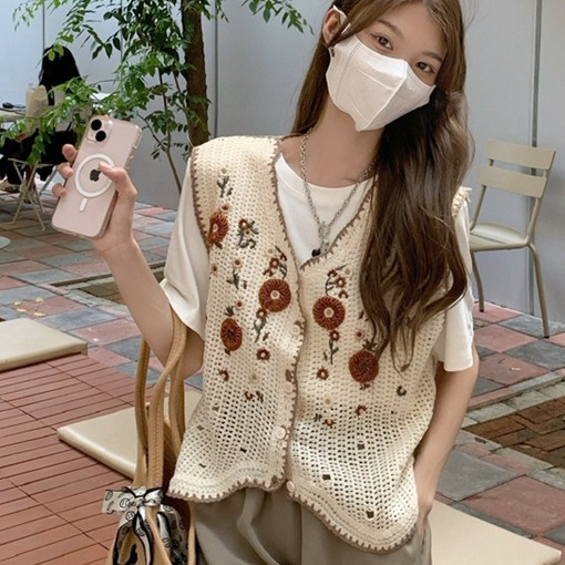 レトロな透かし編みのベスト女性の夏の新型はゆったりしていて、やせています。