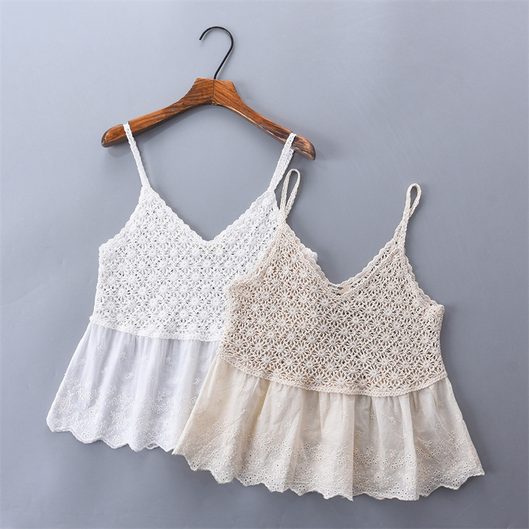 キャミソール刺繍の透かし編みの短いタイプの中に女装の袖なしの上着の新型キャミソールを合わせます。