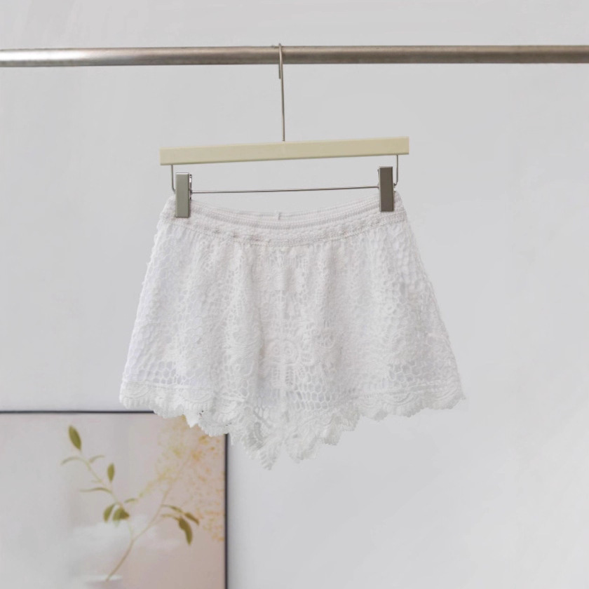 透かし彫りのレースの刺繍のメリヤスのゆったりしている半ズボンは光の安全ズボンの女性の外で新型の半ズボンを着ることを防ぎます。