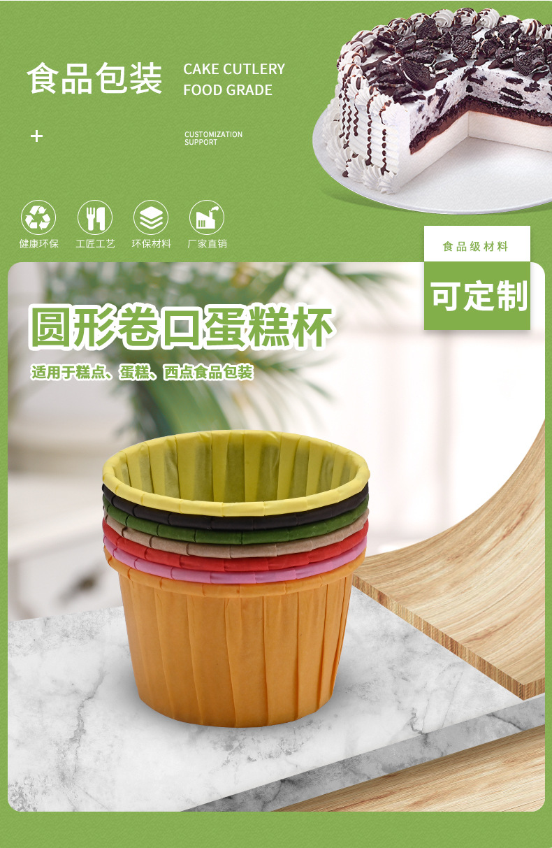 大型馬芬杯食品級使い捨てケーキ紙コップの巻き口に膜をかけて紙コップを乾燥させて高温ケーキの鋳型に耐えます。